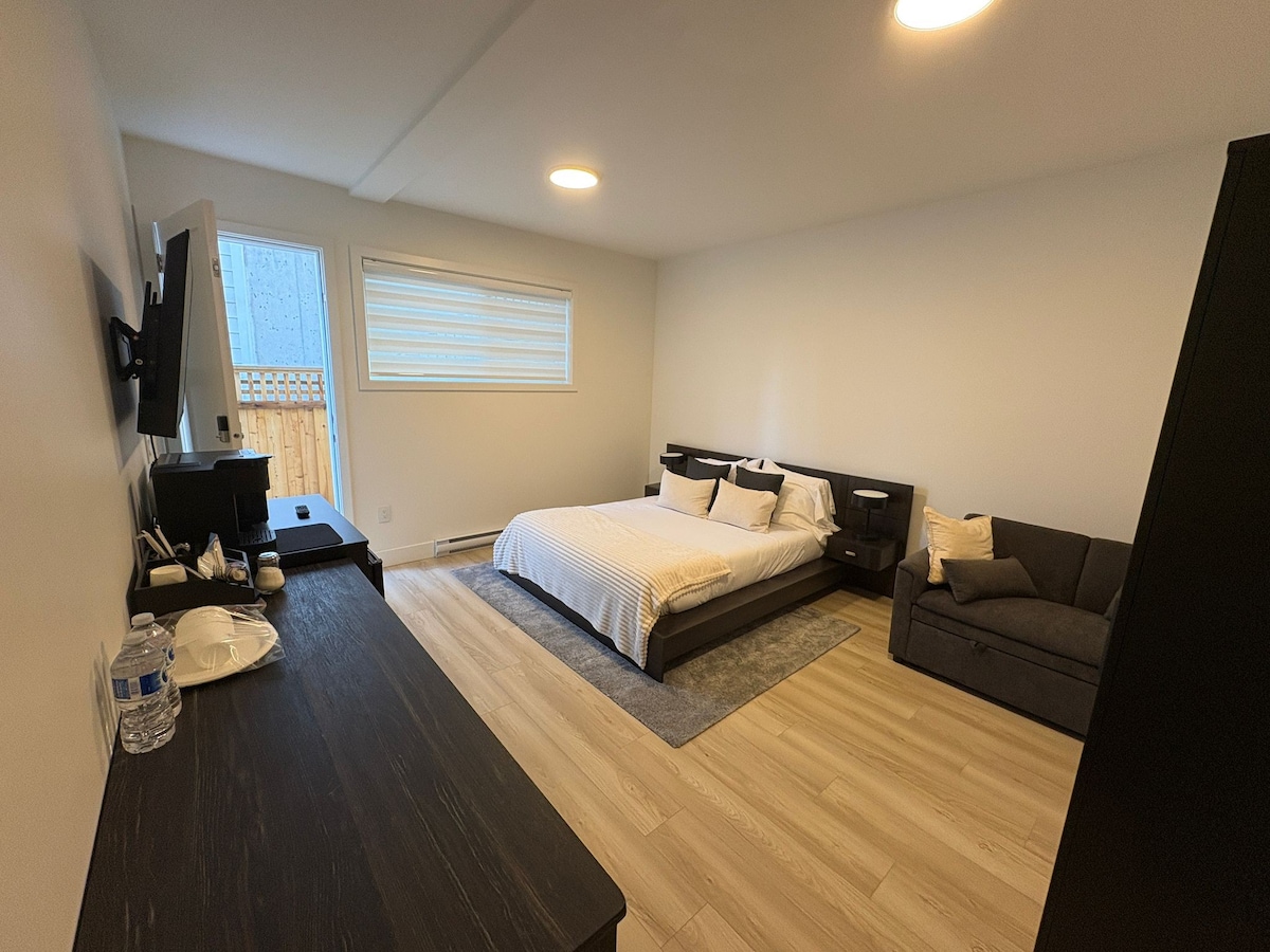 Geniet van een gezellige ervaring in deze centraal gelegen studio. De suite ligt op een steenworp afstand van de inham van de kloof en ligt dicht bij busroutes in alle richtingen. Met een eigen ingang, badkamer en kitchenette bevindt de suite zich op de begane grond en afgezonderd van de rest van het huis. De George inlet ligt een straat verderop en zorgt voor een heerlijke wandeling op elk moment van de dag. Wij zijn een gezin met een 5-jarige op de 1e verdieping! Hoewel de geluidsoverdracht niet slecht is, is het iets om in gedachten te houden;)