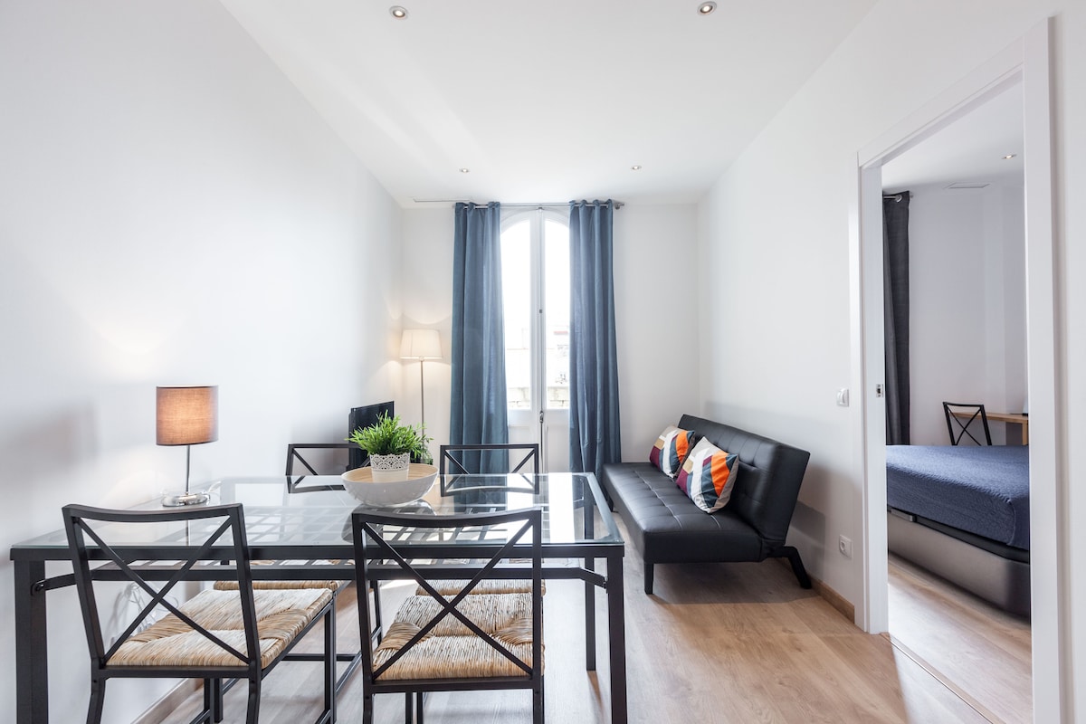 Uitstekend, modern appartement met fantastisch overdekt terras. Balkon met uitzicht over het unieke centrale plein van Gracia. Omgeven door voetgangersstraten, restaurants, cafés, terrassen en twee markten. Vlakbij metro- en busroutes. Combineer je verblijf met het buurtleven. Je zult je gewoon voelen als een local! Welkom!