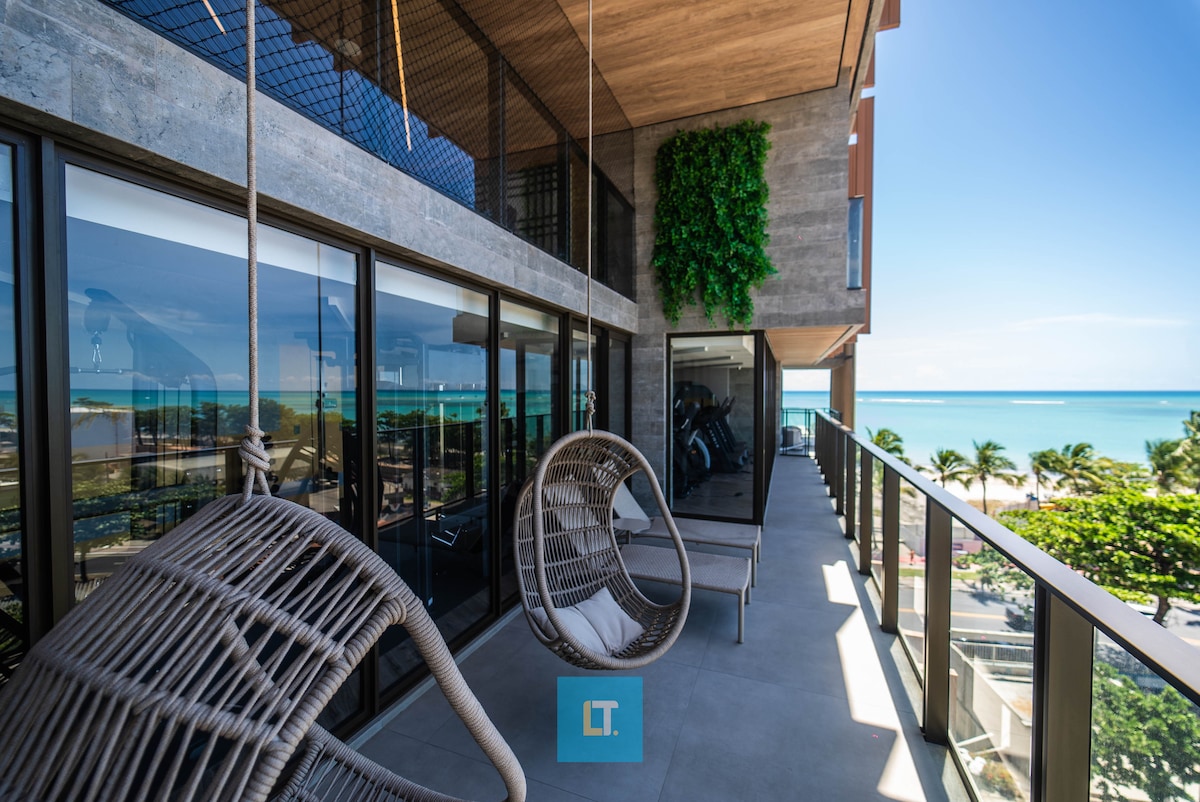 Luxe villa-appartement met balkon met uitzicht op de zee van Pajuçara, panoramisch, adembenemend uitzicht op de natuurlijke zwembaden. Suite Most High Standard, stijlvol, comfortabel en exclusief. Gedurfde architectuur voor maximaal comfort. Nieuw, modern gebouw, 24-uursreceptie, zwembad en dakterras met panoramisch uitzicht, sauna, hydro, fitnessruimte, speelkamer, speelkamer en privéparkeergelegenheid. Op de beste locatie aan zee, in de meest verfijnde en innovatieve ontwikkeling van Maceió.