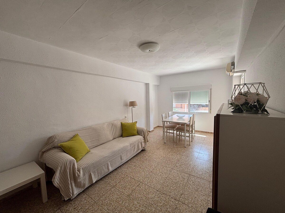 Licht appartement,met balkon aan de straat, binnenpatio, drie slaapkamers (4 bedden en 1 van hen tweepersoonsbed), en een bank in de woonkamer (waarin 1 persoon ook kan rusten). Met betrekking tot, de keuken heeft verschillende accessoires (kookplaat, pannen, borden, potten...) naast een koffiezetapparaat en een airfryer. Het is gelegen in een klein en rustig dorpje, op 15 minuten afstand van het strand op 30 minuten afstand van de stad Valencia. Het is een ideale plek om met je gezin of een vriendengroep te zijn.