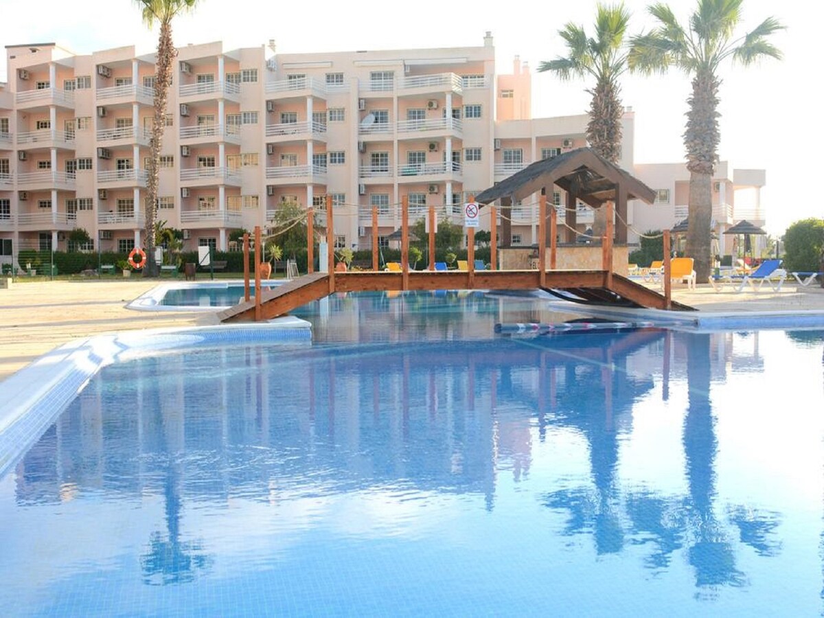 Appartement met 1 slaapkamer en uitzicht op de tuin, gelegen in een privécomplex - Fazenda Viegas, waar gasten kunnen genieten van wifi, gemeenschappelijk zwembad, barbecue, tennisbaan, voetbalveld, beachvolley, kinderspeeltuin en trampoline. Het appartement beschikt over een flatscreen-tv, een eigen badkamer en een volledig uitgeruste keuken. Koffiezetapparaat en theefaciliteiten zijn ook beschikbaar. Elke morgen wordt er elke morgen in het appartement geserveerd