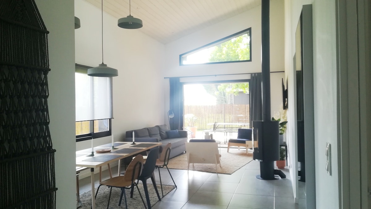 Welkom in onze lichte en moderne villa met een eigen zwembad, twee zonnige tuinen en een luchtig 4,5 meter hoog plafond in de woonkamer. Grote schuifdeuren openen volledig naar beide tuinen, waardoor een naadloze binnen-buiten woonervaring ontstaat. Ons huis ligt op slechts 12 minuten van de stranden en surfspots van Hossegor en biedt de perfecte balans tussen rustige natuur en gemakkelijke toegang tot restaurants, cafés en winkels.