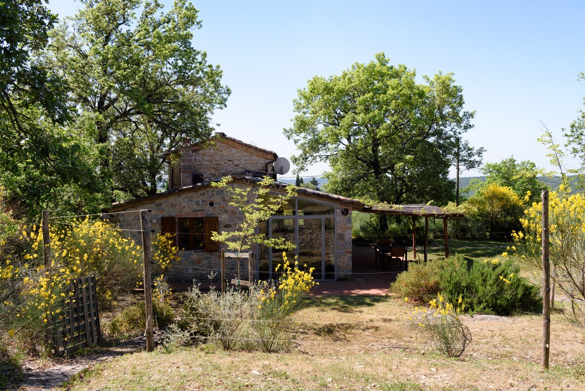 Het huisje maakt deel uit van een charmante traditionele Toscaanse boerderij, gebouwd in steen en gelegen in een van de mooiste gebieden van Toscane. Een prachtige tuin omringt het huis en heeft een prachtig uitzicht op de middeleeuwse stad met zijn beroemde torens.