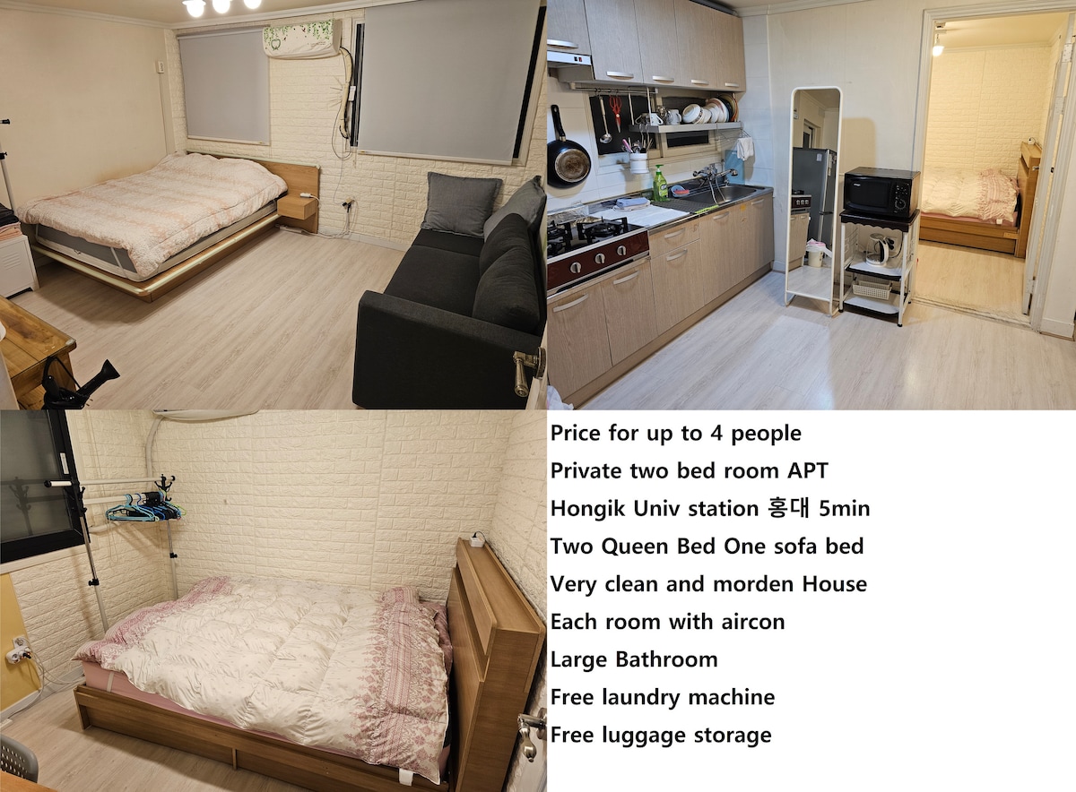 Gezellig. 2Kamer 3Bed. Hongdae stn.4min