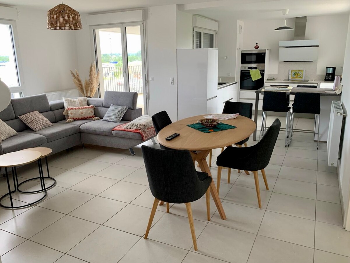 Kom en ontspan in een gloednieuw appartement tussen Bordeaux en de oceaan! Modern, licht en comfortabel appartement. Beveiligde gezinswoning, genummerde privéparkeergelegenheid, balkon. 20 min van het centrum van Bordeaux met de auto en 35 min van de oceaan en paradijselijke meren. De accommodatie ligt op 10 minuten rijden van de luchthaven, op 5 minuten van de bypass, 30 minuten van het treinstation en recht voor een trainingsstadion, ideaal voor sporters.