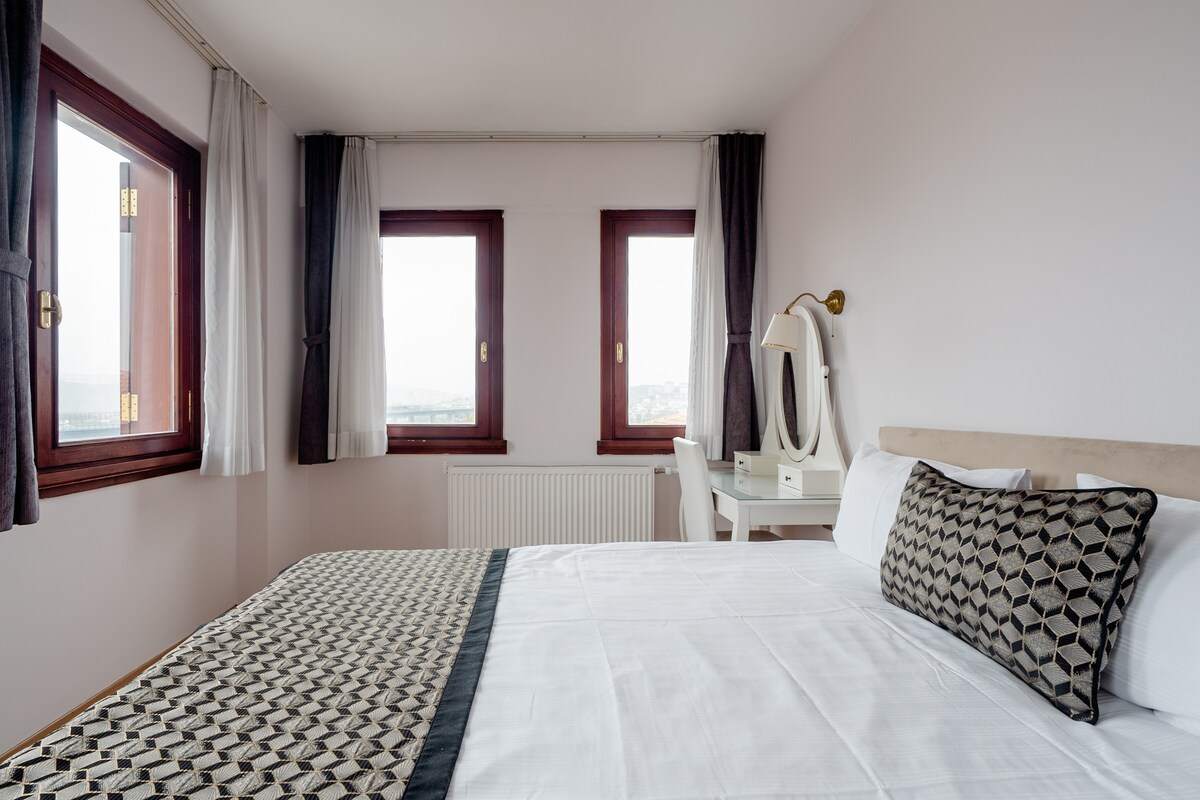 Unieke ruimte met uitzicht op de Gouden Hoorn! ☞ Walk Score 60 (Loop naar cafés, eet-, winkels, enz.) ☞ 1000 Mbps wifi + werkruimte ☞ AC + stralingsverwarming ☞ Mini-koelkast + waterkoker ☞ 32inch hd-tv ☞ Buiten eten ☞ Gratis parkeren op straat ☞ Staande piano 20 minuten → DT İstanbul 30 minuten → Istanbul Airport ✈