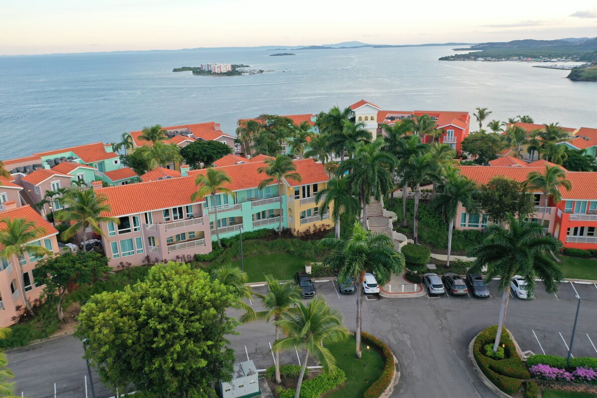 Luxe appartement in The Conquistador Hotel in Fajardo biedt plaats aan 8 gasten, met 2 slaapkamers, 1 hol, 2 badkamers, ruime woon-/eetruimtes, wasserette, volledig uitgeruste keuken en een balkon met een prachtig uitzicht op de oceaan/de bergen. Toegang tot Las Casitas zwembaden/jacuzzi 's en El Conquistador 18-holes golfbaan beschikbaar. Houd er rekening mee dat El Conquistador hotelvoorzieningen niet beschikbaar zijn voor Las Casitas Airbnb-gasten; toegang tot hotelgolf/tennis kan rechtstreeks worden gecoördineerd tegen extra kosten