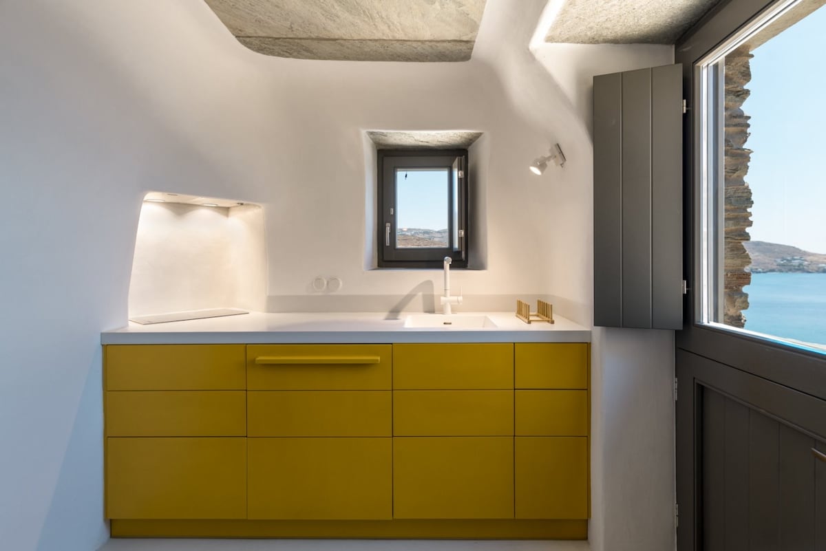 Dit milieuvriendelijke huis van 55 m ² ligt op 18 minuten rijden van de haven van Tinos, aan de westkant van het eiland, genesteld in een olijfgaard en geflankeerd door rotsachtig landschap en uitzicht op de Egeïsche Zee. Deze traditionele boerderij is opnieuw ontworpen in een minimale stijl. De ruimte is ideaal voor een stel dat van landelijk wonen en privacy houdt. Het biedt een kans om te ontspannen van het stadsleven, en opnieuw in contact te komen met de eenvoud en rust van de natuur en mindfulness.