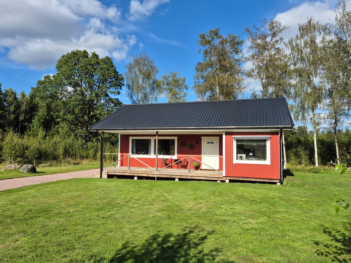 Komfortabelt semesterboende med det lilla extra. Nära badplats, vacker natur, golfbana, Skövde och Skara Sommarland. Husets planlösning är öppen och luftig. Det moderna köket och det inbjudande vardagsrummet är belägna i husets öppna del med en enastående takhöjd. På bottenplan finns därtill ett sovrum med dubbelsäng (140 cm bred) och en toalett med dusch. Med en trappstege tar man sig upp till det mysiga sovloftet som är utrustat med två intilliggande 90cm sängar. Hjärtligt välkomna.