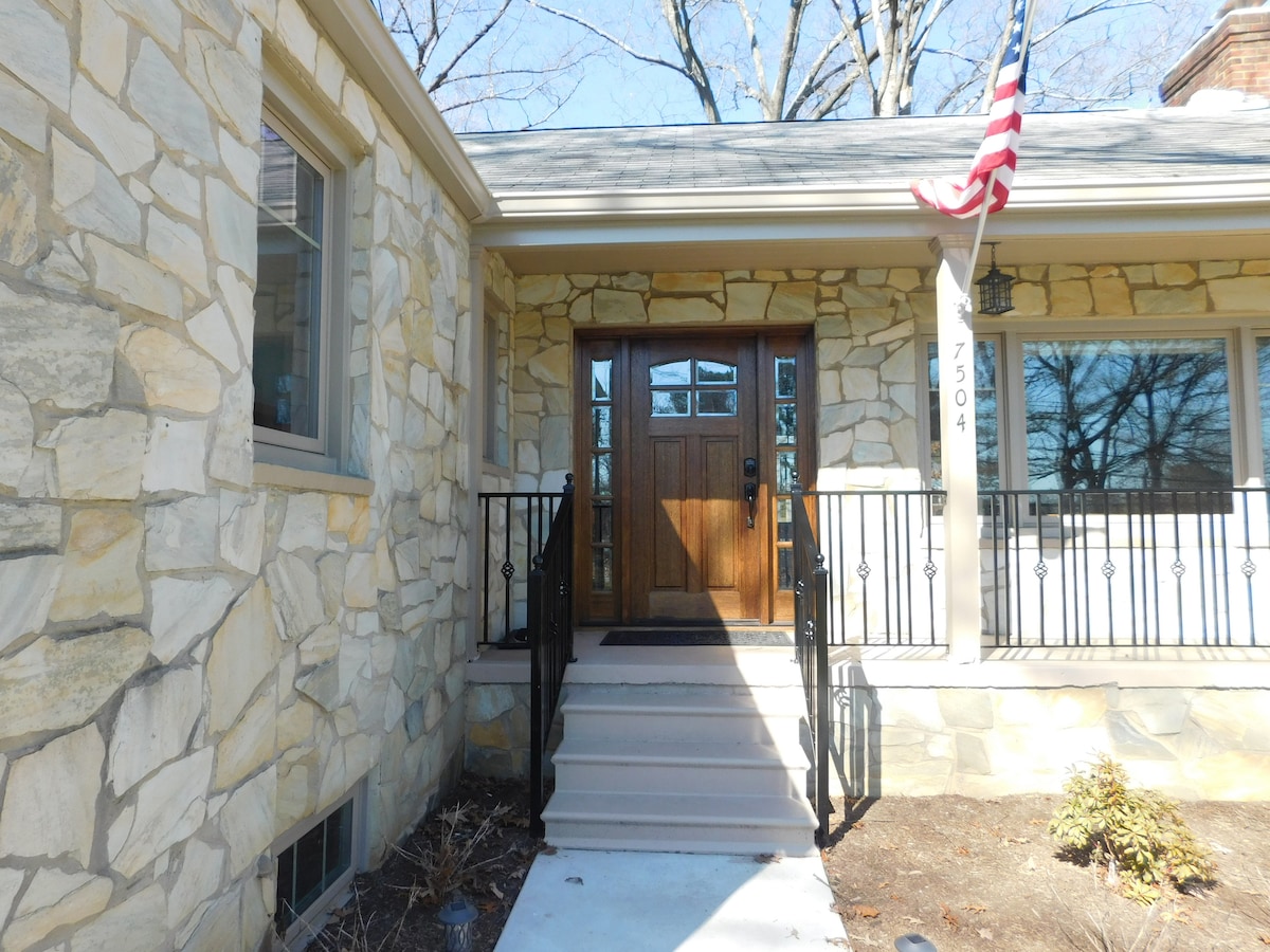 Vind sereniteit in dit prachtige 2BR/1.5BA gastenverblijf met hutgevoel, omgeven door bossen, maar toch centraal gelegen. Een Jack-and-Jill-badkamer die beide slaapkamers verbindt, een ruime keuken en rustgevend uitzicht op het bos, deze ruimte voelt werelden weg van de stad, hoewel het slechts 15 minuten van het centrum van DC ligt. Het gastenverblijf is volledig privé (gedeelde oprit), gelegen in een veilige en rustige buurt, en dicht bij geweldige restaurants, supermarkten en alles wat je nodig hebt voor een comfortabel verblijf.