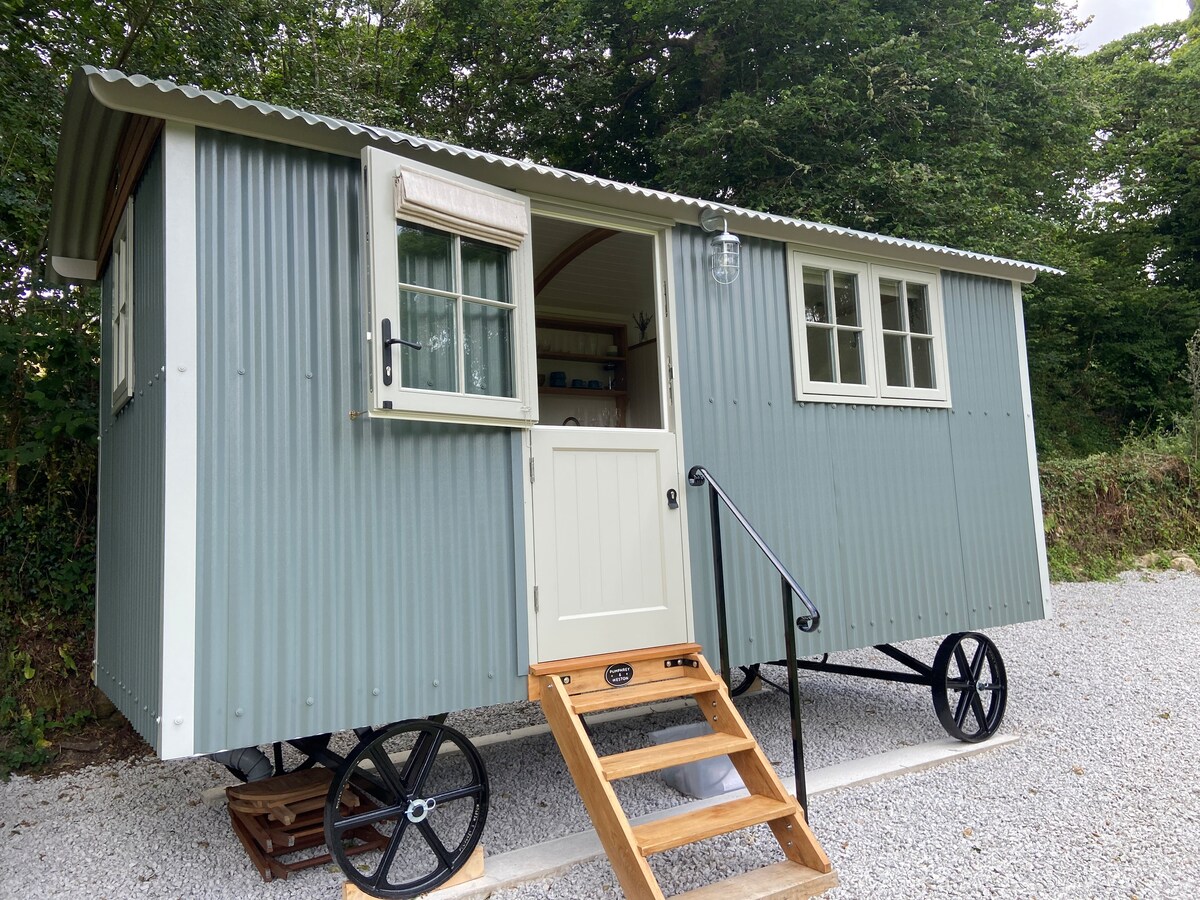Ontspan en ontspan in Lamorna herdershut. Verborgen op een afgelegen locatie, op slechts 2,2 mijl afstand van de stad Falmouth. Verderop in de gebaande paden vind je onze hut, omgeven door natuur, genietend van een ononderbroken uitzicht op het platteland. Afgewerkt met de hoogste normen en ontworpen voor je comfort, met een tweepersoonsbed, geïntegreerde douche en toiletfaciliteiten. De volledig ingerichte mini-keuken is voorzien van een Everhot (oven/verwarming in AGA-STIJL) om je gezellig en warm te houden. EEN KLEIN HONDJE GEACCEPTEERD MET TOESTEMMING VAN DE VERHUURDER. 🐕