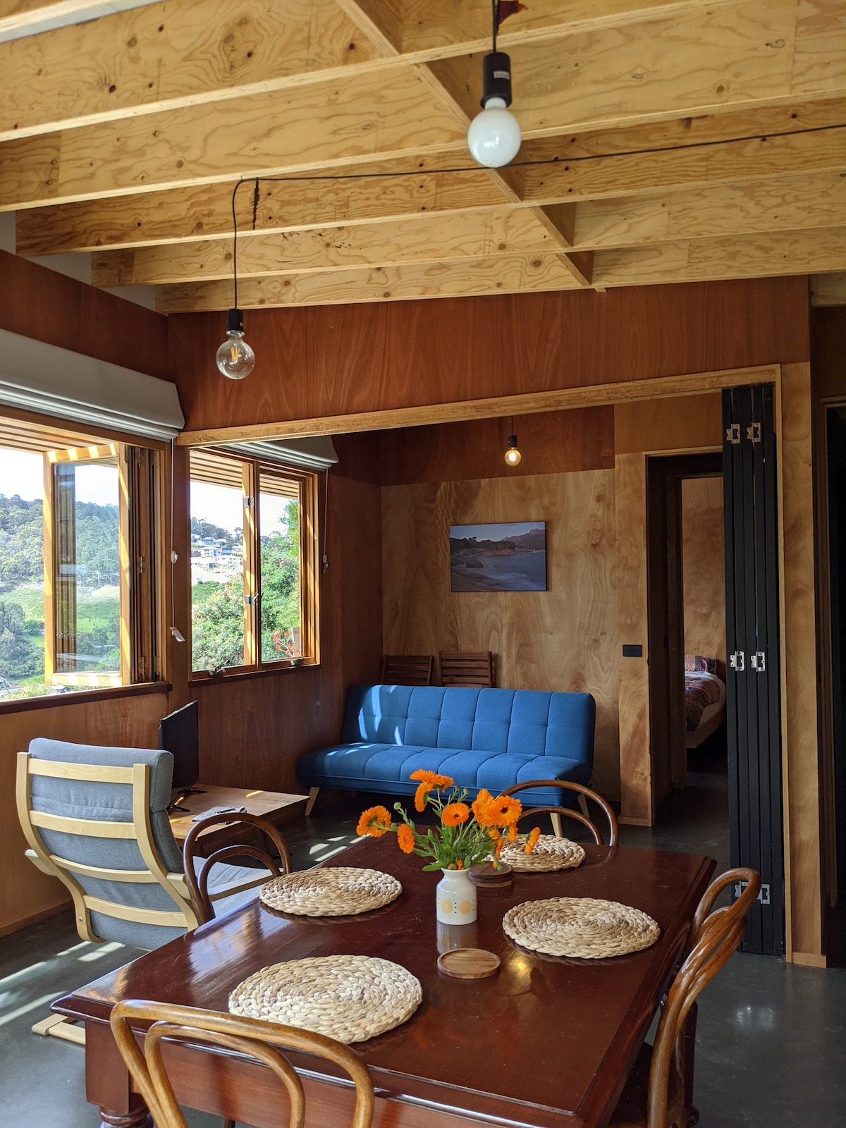 We willen bezoekers van Hobart een unieke en luxe accommodatie-ervaring bieden, die modern design verbindt met zijn ruige, bosrijke omgeving. Gelegen in West Hobart, zijn we op 8 minuten rijden van de waterkant van Salamanca. Ons huis met twee verdiepingen is gelegen in een eigen bossige straat, met een prachtig uitzicht op de Derwent-rivier, South Hobart, Sandy Bay en verder. De woning is ruim en privé, maar toch omgeven door (onschadelijke) lokale wilde dieren. Je zult veel wallabies zien grazen in de woning.