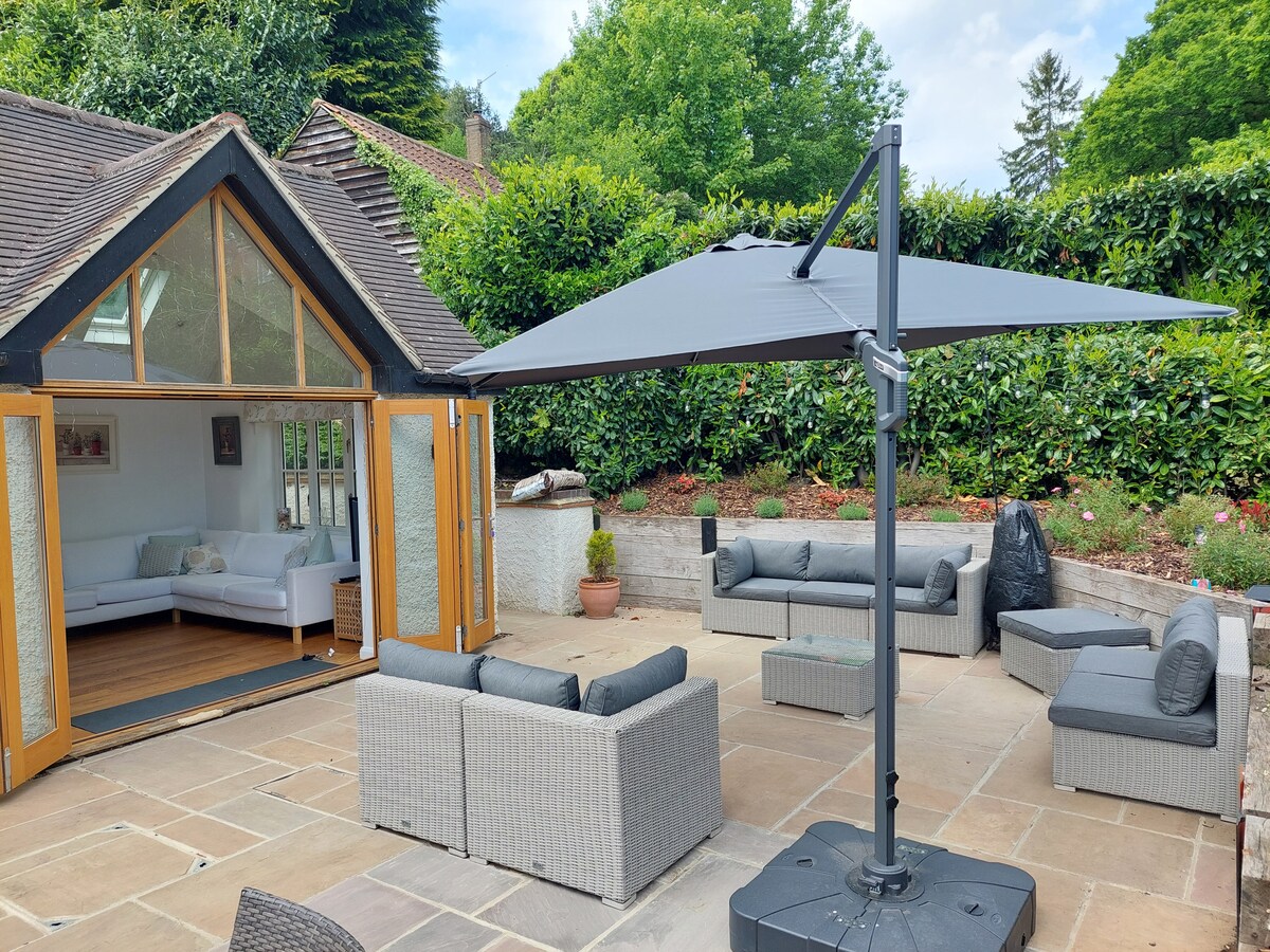 Deze knusse studio is een prachtig verbouwd aardewerk en biedt een kingsize bed, een eigen badkamer, een keuken, een Noorse houtkachel, een aparte parkeerplaats en een grasveld buiten. Gelegen in een prachtige beboste tuin van twee hectare in een gebied van uitzonderlijke natuurlijke schoonheid, stappen bezoekers direct uit op kilometers onbeperkt wandelen en fietsen in een onontwikkeld platteland. 1 minuut van de A3, op 1,5 mijl van het treinstation van Milford ( 40 minuten Londen).