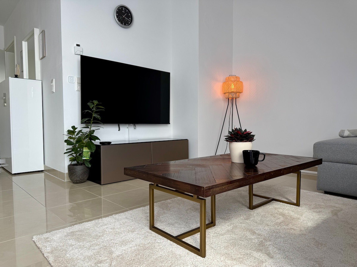 Modern 53 m² 2-kamer appartement op een rustige locatie in Straelen-Herongen, in de buurt van Venlo en Landgard. Eigen terras, woonkamer met BOSE-geluidssysteem, 65-inch tv, slaapbank. Volledig uitgeruste keuken, moderne badkamer met regendouche, slaapkamer met bed van 160 x 200 cm en Emma-matras. Dicht bij supermarkt, Landgard, 7 km naar de oude stad, 6 km naar Venlo, 3 km naar de Blue Lagoon met strand, klimpark, wakeboard, buitenzwembad in Walbeck (13 km), thermale baden in Arcen (17 km). Veel fietspaden om te verkennen!