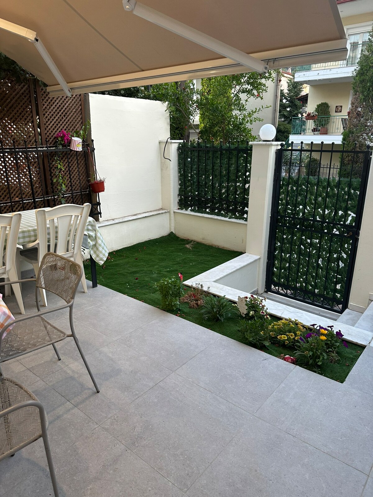 Het huis ligt op 22 minuten (10 km) van het stadscentrum, aangezien het aan de rand van Thessaloniki ligt. Het heeft twee ruime woonkamers, twee slaapkamers, een badkamer en een volledig uitgeruste keuken, evenals een speciale werkruimte. De grote omheinde tuin (200 m²) biedt ontspanning en is ideaal voor kinderen en huisdieren. Er zijn 2 sets kinderbedjes en kinderstoelen beschikbaar.