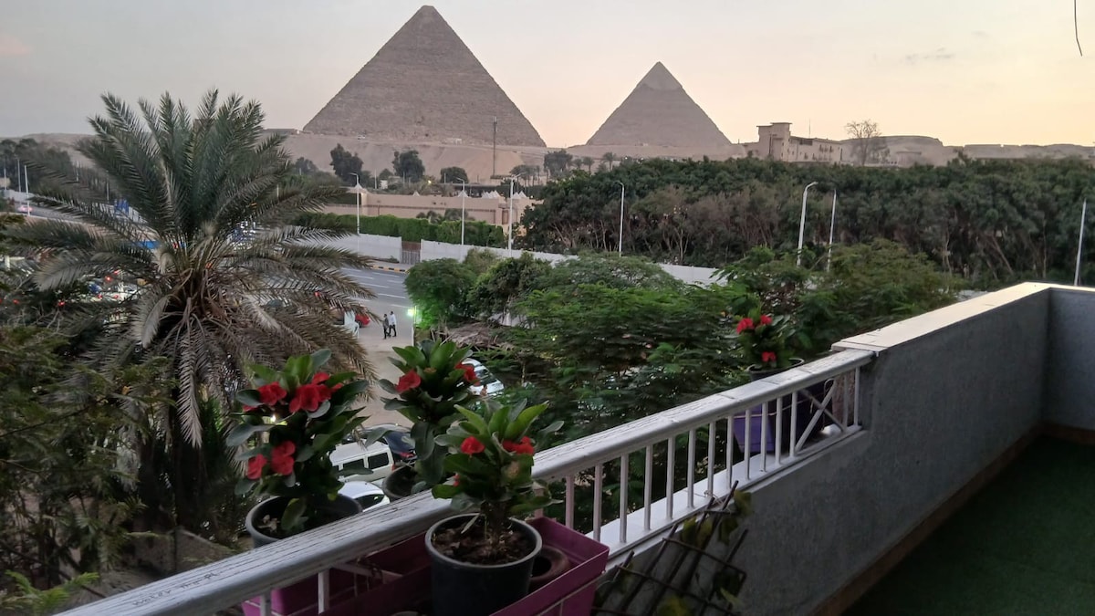 Welkom in ons appartement! Op slechts 5 minuten lopen van de ingang van de sfinx en piramides, met een prachtig uitzicht op het balkon. Gelegen in een veilige en levendige omgeving in de buurt van restaurants, cafés, fruitwinkels, markten en apotheken. Het appartement is volledig voorzien van airconditioning, met snelle onbeperkte wifi, een goed uitgeruste keuken, schone lakens, schone handdoeken en een rustige sfeer. Waarschijnlijk de beste plek om te genieten van het uitzicht op de piramides!
