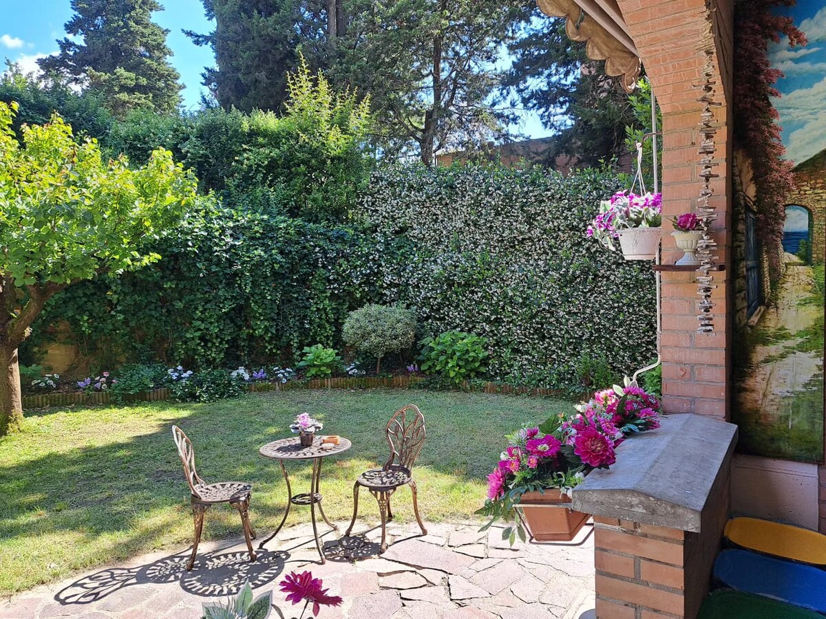 Charmante een-slaapkamer in Italiaanse villa met eigen terras en gloednieuwe airconditioning! Deze gezellige retraite ligt op loopafstand van de beroemde Via degli Dei en beschikt over een volledig uitgeruste keuken, een eigen badkamer, een queensize bed en een adembenemend uitzicht op de bergen vanuit je slaapkamerraam. De vriendelijke familie hieronder verbouwt fruit en noten en maakt zelf taarten, sauzen en verse pasta. Geniet van authentiek plattelandsleven met modern comfort en een warme, gastvrije sfeer!