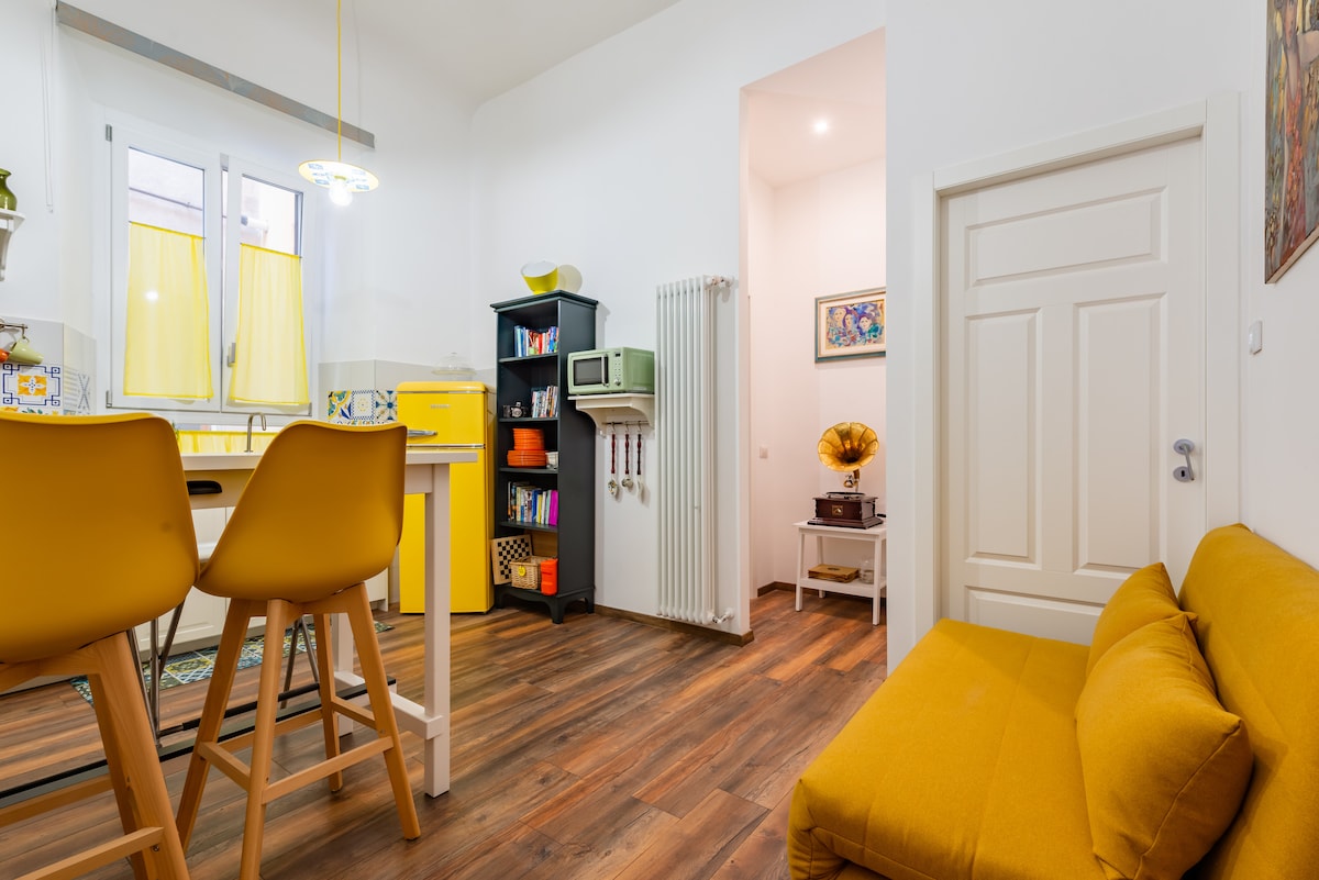 Kleurrijk onlangs gerenoveerd appartement met een levendige artistieke sfeer, op slechts twee minuten lopen van station Termini en op 5 minuten van metrostation Repubblica. Je vindt alles wat je nodig hebt tijdens je verblijf: een volledig uitgeruste keuken met koelkast, magnetron, wasmachine en vaatwasser; een gezellige badkamer met een grote douchecabine; een grote slaapkamer met een kingsize matras; een slaapbank die plaats biedt aan 1 extra gast; airconditioning, tv en een werkende grammofoon.