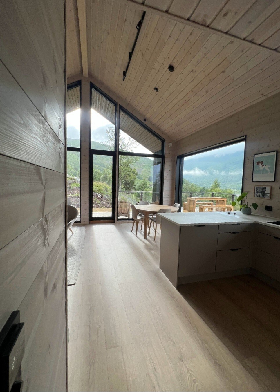 Welkom in ons huisje in het hart van Sunnmørsalpene. Het gebied is het hele jaar door perfect om te bergwandelen en in de winter zowel alpineskiën als langlaufen. Het alpiene resort Sunnmørsalpane en het skigebied Strandafjellet liggen op een klein stukje rijden van de hut. En de langlaufloipes bevinden zich net buiten de deur. De hut is gebouwd in 2020, modern maar gezellig. Ontspan binnen of buiten op het terras, na een dag vol activiteiten of gewoon om te ontspannen in het prachtige Noorse landschap.