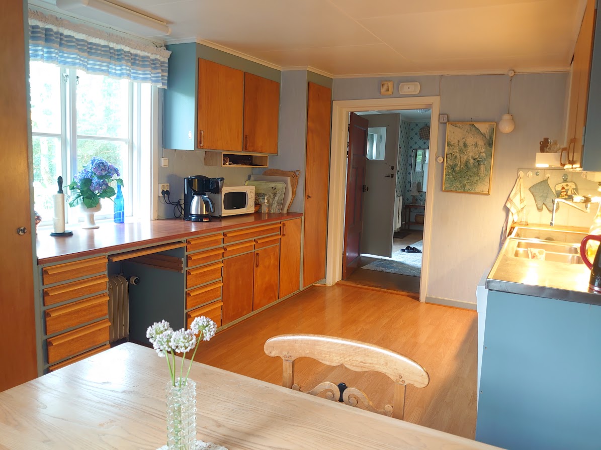 Gammelgården ligt 5 km ten noorden van Finspång. Het huisje is nieuw gebouwd in oude stijl met maanvensters, kristallen kroon en luxe beddengoed. Uitzicht op het meer en een steiger naar Bysjön, we hebben een kleine roeiboot voor gasten. Fietsen lenen voor heerlijke fietstochten en golfclubs lenen, Finspång heeft een 27-holes baan met pay and play. Wij (Ingrid en Bill en de katten Tussilago en Pantufa) wonen op de boerderij in een oud huis uit de jaren 1750 met aparte ingang en parkeerplaats.