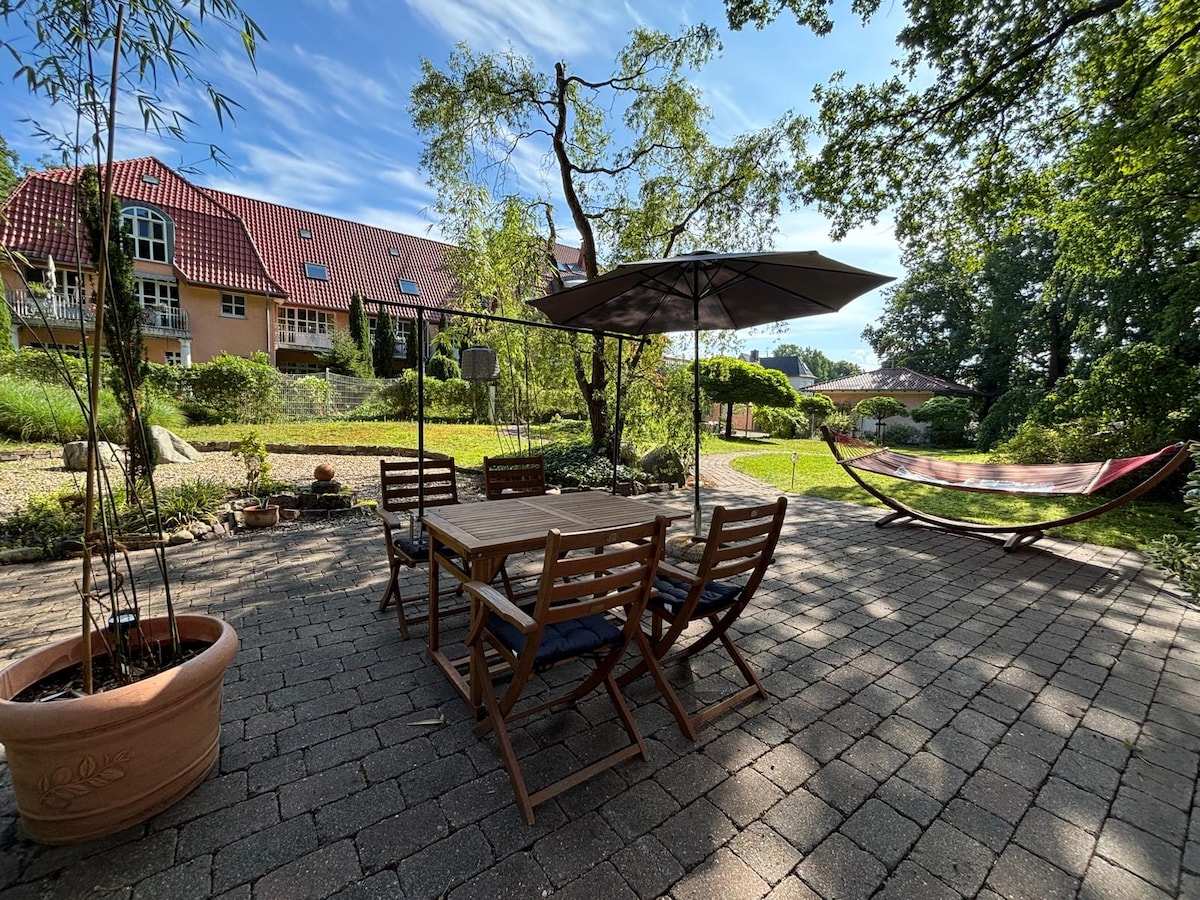 Die kleine Ferienwohnung hat ca. 30 m², eine Dusche + WC sowie einen Wohn/Schlafraum mit integriertem Küchenbereich und ist besonders gut für Paare und Dienstreisende geeignet. Wer eine Unterkunft für Unternehmungen in die Hauptstadt Berlin oder in eine wunderschöne, landschaftliche Umgebung sucht, ist hier sehr gut untergebracht.Die Straßenbahn nach Berlin ist etwa 7 Gehminuten entfernt, von dort mit der S-Bahn bis in die City nochmal etwa 45 min, mit dem Auto ist man in 30 min im Stadtzentrum.