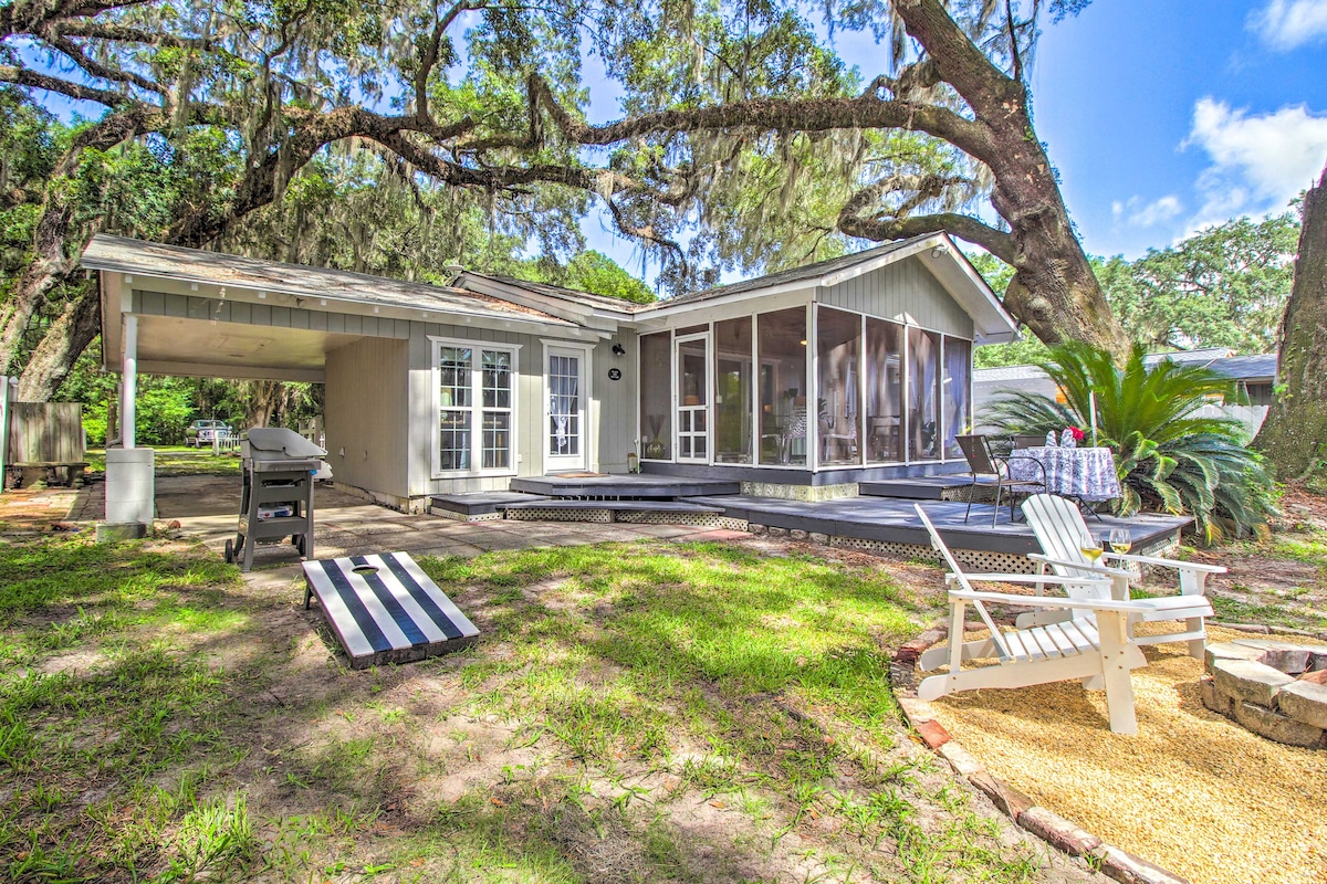 Welcome to your getaway on the marsh! Relaxation, panoramic views, and warm nights are the name of the game here. Bring yourself, a significant other, friends, or your whole family and enjoy this serene cottage that sits on the gorgeous Georgia marsh under a huge live oak tree. You are only 30min from downtown Savannah, and a short drive from many local attractions and beaches. Enjoy having it all at your fingertips while simultaneously relaxing in a rural, quiet, and private setting.