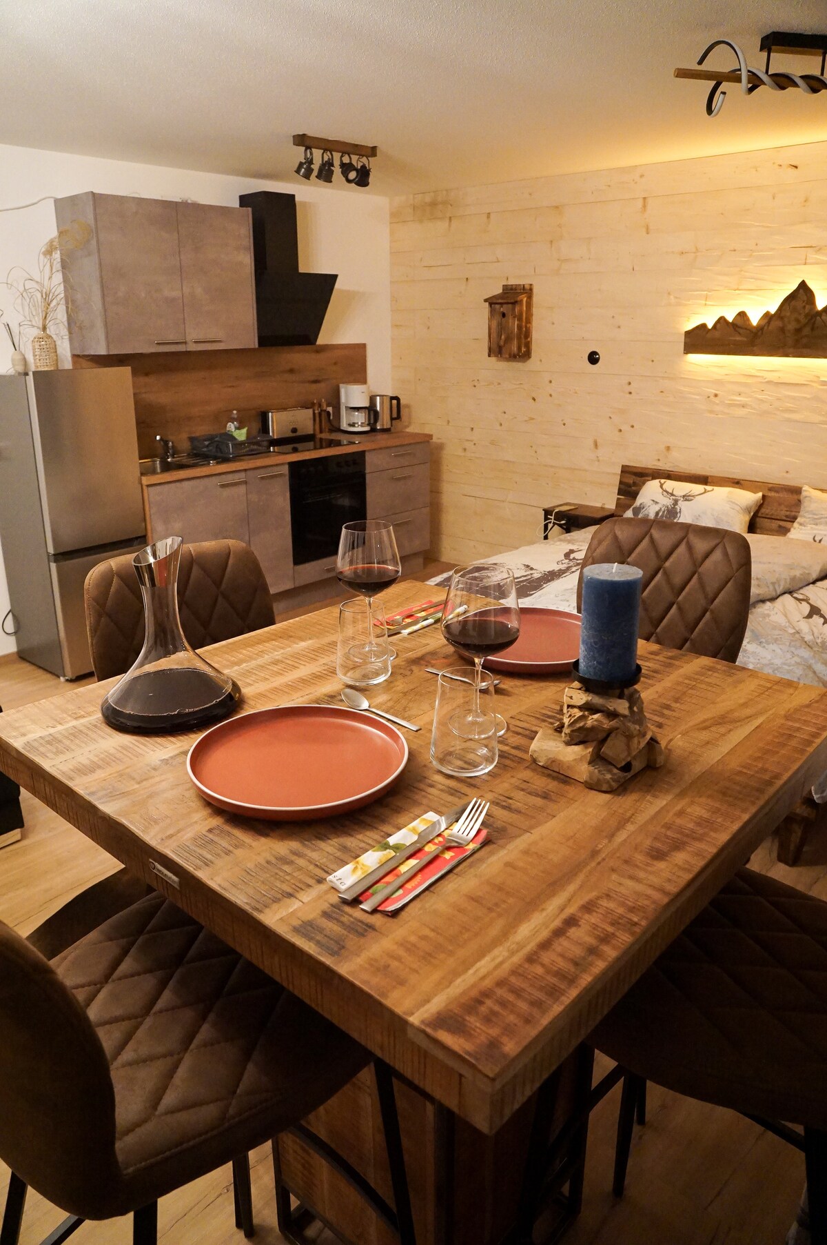 Het design loft-appartement bestaat uit een ruime kamer met een grote slaapbank (voor permanente slapers), evenals een volledig uitgeruste keuken met vaatwasser en een moderne badkamer voor privégebruik. Het huis is rustig gelegen midden in het bos op een open plek. Parkeren voor de deur. Een plek om tot rust te komen en op te laden. Bakkerijen en restaurants in het dorp zijn op loopafstand van de zee. Zwemmeren (onder andere Chiemsee) fietstochten (BikePark Samerberg) en de bergen liggen voor de deur.