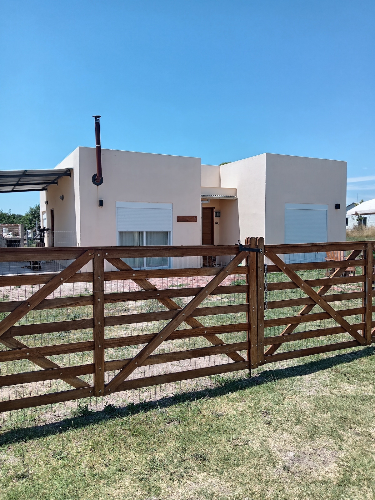 Salute is een prachtig landhuis dat 12 jaar geleden is gebouwd op een veld van 24 hectare op 2 km van de stad Nueva Helvecia. Het heeft een zwembad van 12 x 3 meter met bedrading voor veiligheid, ideaal om te zwemmen, en een grill en houtoven met schaduw voor lunches. Er is een plafondventilator in alle omgevingen en een koude inverterlucht in de eetkamer. Een woning in de woonkamer eetkamer en drie houtkachel in de kamers geven warmte aan het huis.