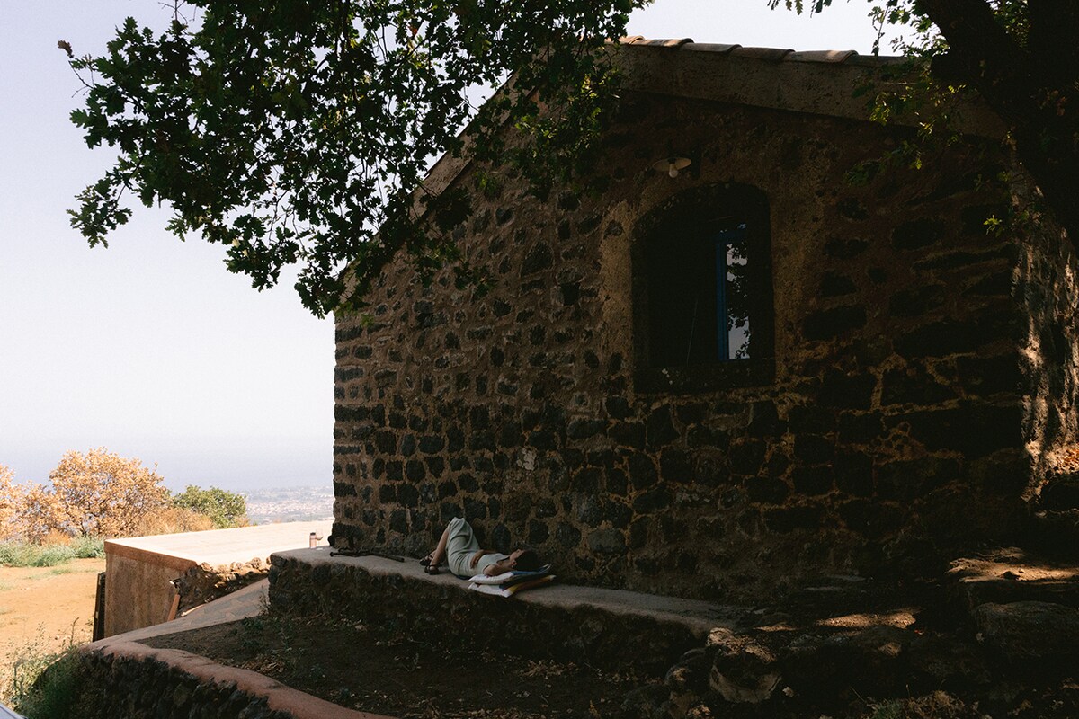 Comfortable mountain house, restored from an ancient winery, dipped into the eastern side of the Etna Park. Leaning out from the terrace you have the opportunity to enjoy the wide and striking view over the Ionian sea, the harbour town of Riposto up to Taormina, with Monte Tauro Castle and the ancient Greek theatre, and Calabria in the background. Other than the terrace the house offers a garden, with a dining area, and a private grove with evergreen and cherry trees.