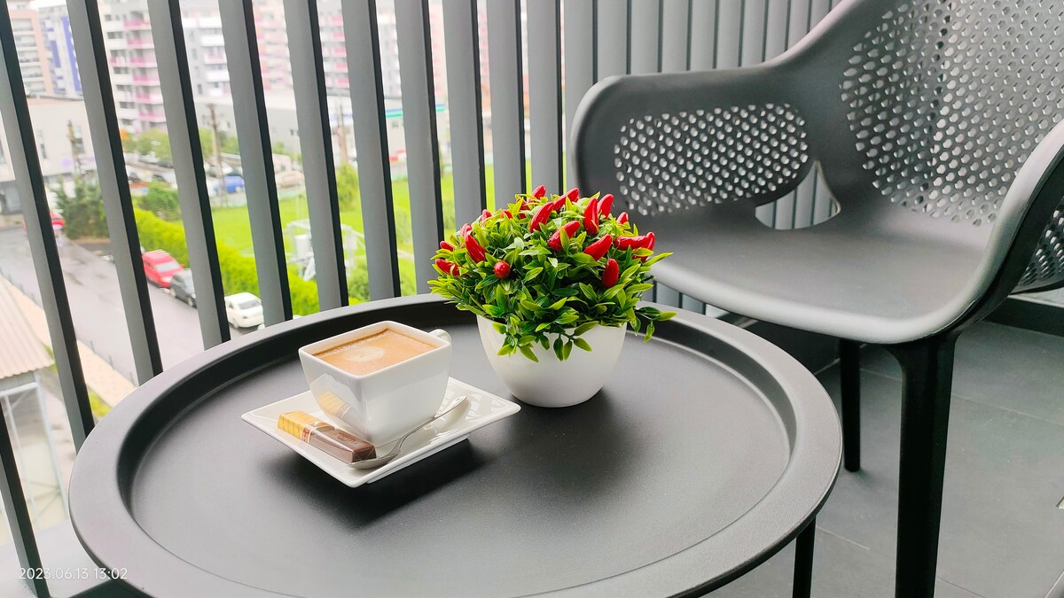 Geniet van Cluj vanuit een licht, ruim appartement met terras en garage van 60 m ²! Op 15 minuten lopen van Vivo Mall en 10 minuten naar Amethyst Clinic. •2 slaapkamers, 2 badkamers en een woonkamer met grote en comfortabele bank •Terras met uitzicht op de zonsondergang • Supermarkt op 3 min •Volledig uitgeruste keuken: oven, kookplaat, kap, koelkast •Smart-tv, snelle wifi (66 Mbps), wasmachine • Parkeergelegenheid voor privégarage. Ideaal voor gezinnen, vrienden of reizen voor werk.