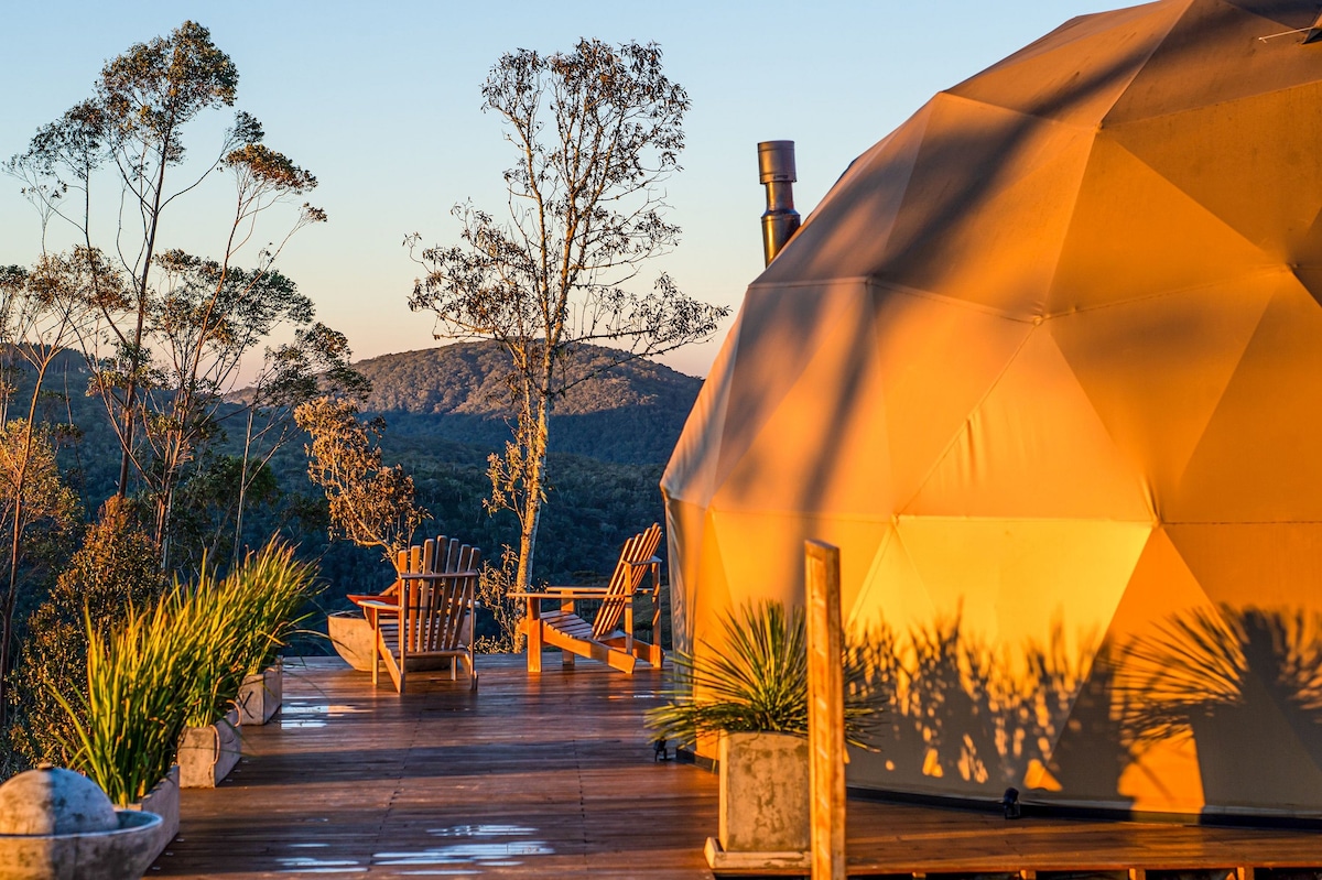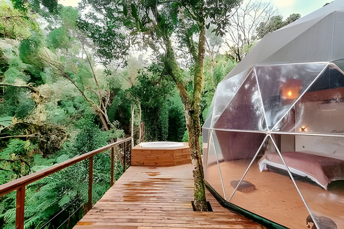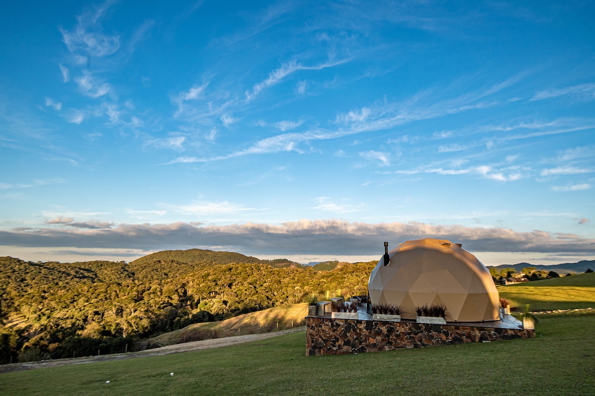 Ervaar onvergetelijke momenten in Refúgio nas Nuvens – Domo Ômega, een exclusieve koepel in Rancho Queimado. Geniet van de hydro met uitzicht op de bergen, open haard en houtvuur met hout voorzien. Word wakker met een kopje koffie op het terras, terwijl je de zonsopgang en de omliggende natuur bewondert. Omgeven door boerderijen, vogels en privacy op 5 hectare. Dicht bij het charmante centrum met Europese architectuur en verse aardbeien. Een romantisch en uniek toevluchtsoord in de Serra Catarinense.