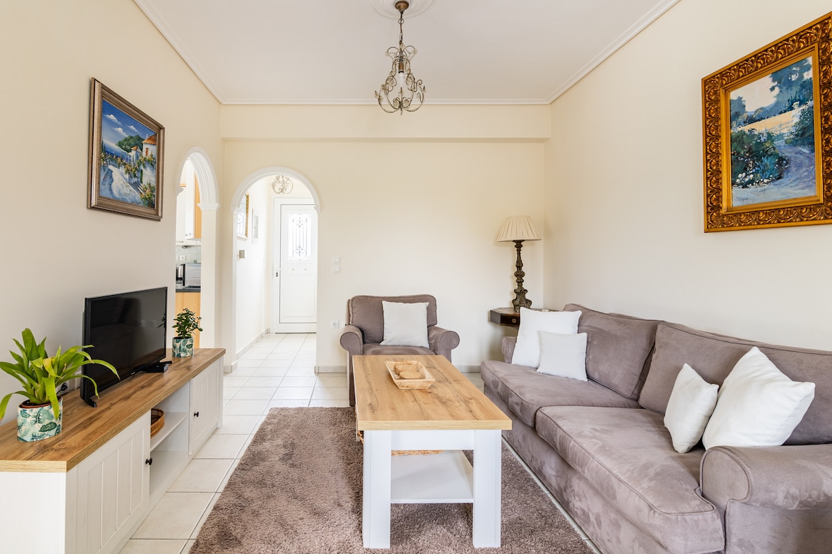 Kefalonia is een groot eiland vol geweldige bezienswaardigheden. Ons mooie appartement is midden in het midden geplaatst en kan je perfecte uitvalsbasis zijn om alles te verkennen. Op minder dan 10minuten van de luchthaven of Argostoli, in het dal van Mazarakata, aan de voet van het kasteel van St. George. Onze ruimte is een goed ontworpen modern appartement met één slaapkamer in een woongebouw van onze familie. Rustig, privé en stijlvol: een uitstekend huis voor koppels voor een geweldige vakantie-ervaring in Kefalonia.