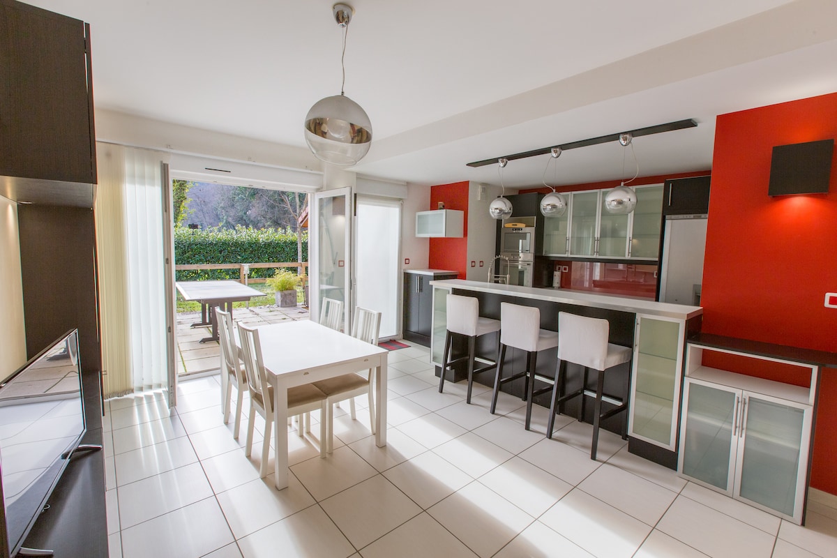 🌿 Modern appartement met airconditioning in een groene omgeving Gelegen in de buurt van het ziekenhuis, winkels, oude stad Grenoble en de kabelbaan. 🚲 Verken de stad en de vele fietspaden met de fietsen die worden verstrekt. 🌞 Geniet van het terras met barbecue, een mooie tuin, badminton. Jacuzzi (in het seizoen). 🧺 Het appartement heeft een wasmachine en een vaatwasser. Er is🚗 een eigen en veilige parkeerplaats beschikbaar 🚫 Let op: het appartement is niet toegankelijk voor personen met beperkte mobiliteit.