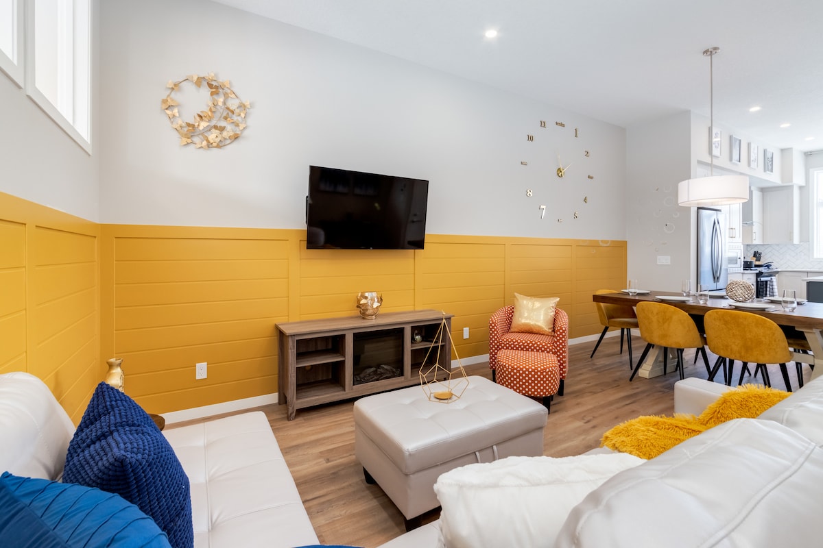 Welkom bij DE KOSMOPOLITISCHE - Gloednieuwe 2 slaapkamer lager gelegen walkout suite met dubbele ensuites. - Geniet van een ultraluxe ruimte met een HD-projector in de woonkamer om te genieten van een filmavond - Centrale airconditioning - Volledige keuken wacht op de chef! - Verwarmde bedden - Queen Size - Snel internet - Telus Premium Cable, Netflix, Amazon Prime, Disney + en Crave - Wasmachine en droger - Koffiezetapparaat - Een patio en hangmat om van de achtertuin te genieten Banff: 154 km (1u 45m) Luchthaven: 40 km (28m)