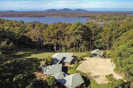 Geniet van exclusieve toegang tot 20 hectare bosrijke hectare met uitzicht op Wallis Lake. Wallis Pavilions biedt comfortabel plaats aan 2,5 gezinnen en is een van de beste woningen in de omgeving. De perfecte locatie om te ontspannen en van de natuur en elkaar te genieten. Kangoeroes en herten worden vaak gespot op het terrein, naast overvloedige flora en fauna.