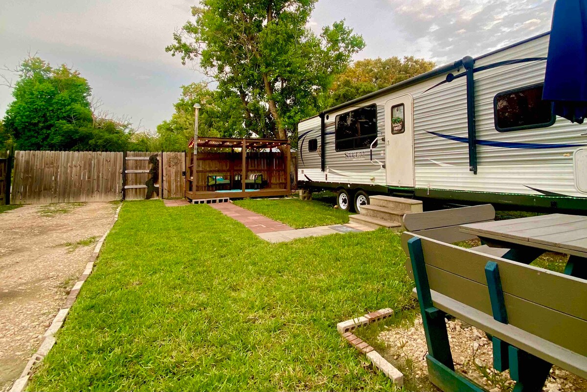 Stay at the Country Side Escape deep in the heart of Old Downtown Rosenberg in our travel trailer. There are always events happening in old downtown or in near proximity of the property. As well as parks, nature to check out, and if you like shopping there is plenty of antique stores and shopping centers nearby.