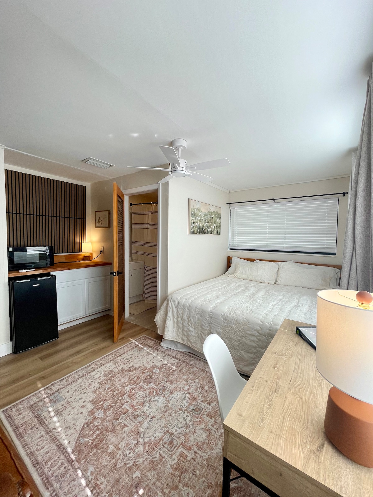 Welkom in The Stillness Suite, je rustige ontsnapping in het hart van Fort Myers. Deze serene en gezellige privékamer beschikt over een aparte ingang, een ruim kingsize bed, een schone badkamer en huiselijke voorzieningen, zodat je je direct thuis voelt. Je bevindt je op de perfecte locatie om te winkelen, te dineren en te genieten van het nachtleven van Downtown Ft. Myers of maak een korte reis en geniet van onze stranden aan de Golfkust. Of het nu op zakenreis is of als koppel reist, onze privésuite past perfect bij je behoeften.
