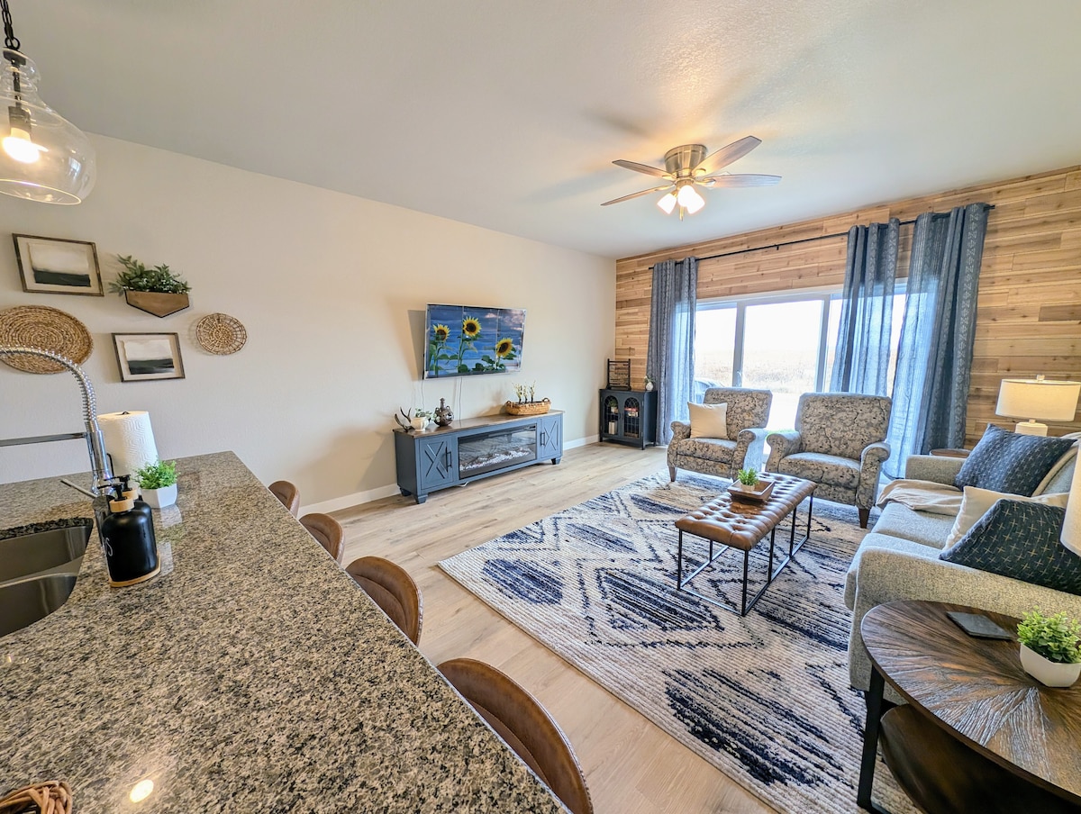 Geniet van het uitzicht op Manhattan vanaf onze rustige heuveltop twee bed/1 badkamer kelder suite met een eigen ingang, je eigen thermostaat, gratis wifi, volledig bad met bad/douche en een kamer met minikoelkast, magnetron en tv . Parkeren op het terrein met stenen treden die leiden naar een eigen opgang in de achtertuin met een vuurkuil om te ontspannen onder de sterren. Gemakkelijke toegang tot KSU-campus, stadion, Aggieville en Ft. Riley. Gasten hebben toegang tot de aparte ruimte met zelf inchecken. Houd er rekening mee dat de eigenaren boven wonen.
