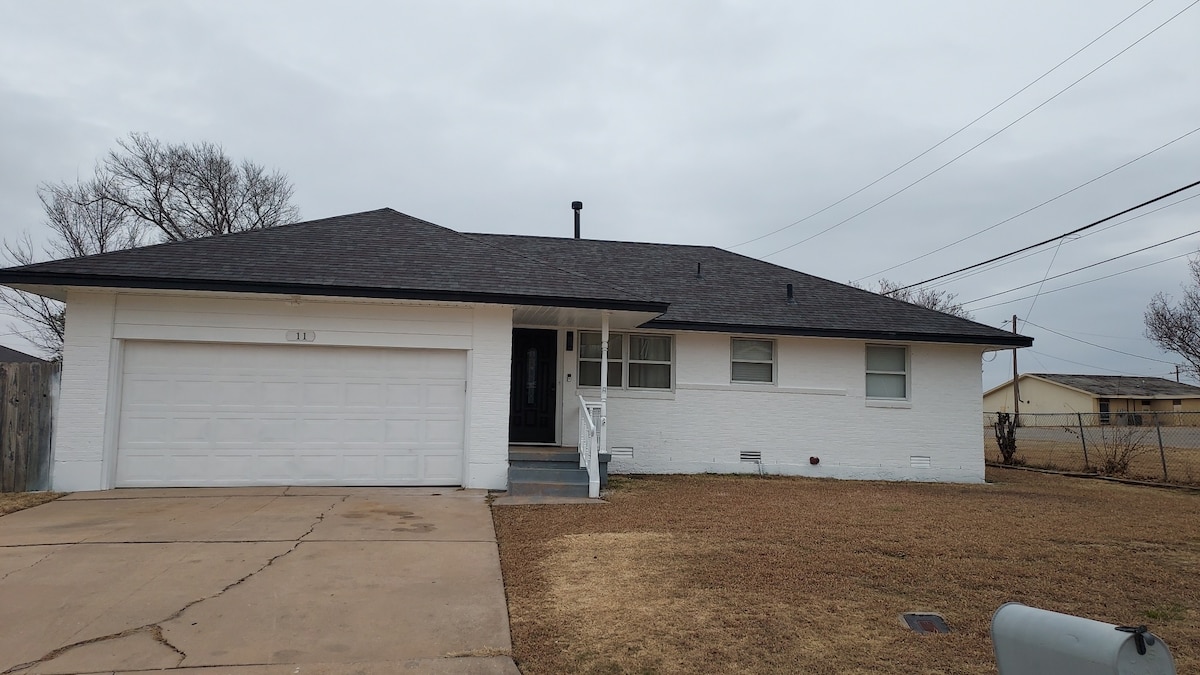 Onlangs gerenoveerd en klaar voor gasten! Een rustig toevluchtsoord, ideaal om afgestudeerde militairen of andere lokale gelegenheden te vieren. Perfecte locatie aan de oostkant van Lawton, iets meer dan een mijl voor gemakkelijke toegang tot I-44. Een snelle rit van tien minuten naar Ft. Sill. Genesteld in een rustige buurt met een ruime privacy omheind in schaduwrijke achtertuin. Vraag reserveringen voor dezelfde dag aan! Ik zal mijn best doen om je reis mogelijk te maken. Georganiseerd door een lokale host die zich inzet om je verblijf zo comfortabel mogelijk te maken.