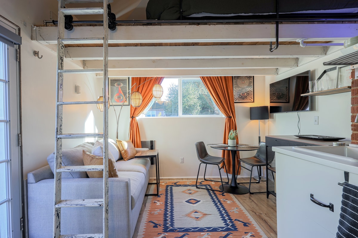 Verken de restaurants, coffeeshops en bars van wereldklasse in de nabijgelegen wijken Williams en Mississippi. Maak een wandeling rond de bekroonde (en oudste) rozentuin in de City of Roses aan de overkant van de straat in Peninsula Park. Thuis heeft deze studio op de tweede verdieping extra ruimte in de meditatie loft, een volledige keuken, snel internet en een beamer voor streaming. Geniet van je eigen terras over de gedeelde tuin met hangmat en H/C buitendouche. Bus en trein in de buurt met voldoende parkeergelegenheid op straat.
