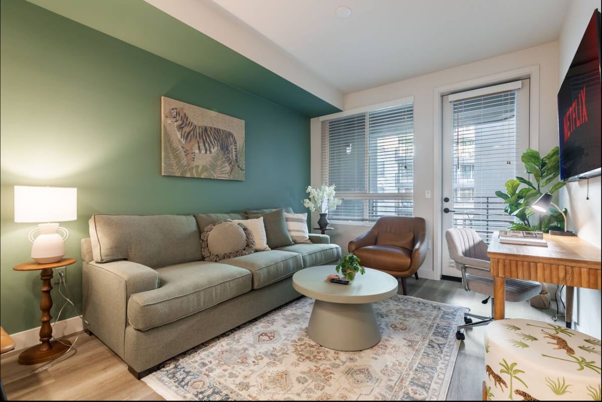 Welkom in je stijlvolle retraite met 1 slaapkamer in Stanton, Californië! Perfect gelegen op slechts 20 minuten van Huntington Beach en Disneyland, en op 25 minuten van Long Beach, biedt dit rustige appartement modern comfort en gemak. Geniet van luxe voorzieningen, waaronder een zwembad, een bubbelbad, een fitnessruimte, een lounge op het dak, buitengrills en nog veel meer. Met een eigen balkon, gereserveerde parkeerplaats, opladen van elektrische auto's en huisdiervriendelijke ruimtes is dit de ultieme uitvalsbasis voor ontspanning of avontuur. Reserveer nu voor een onvergetelijk verblijf!