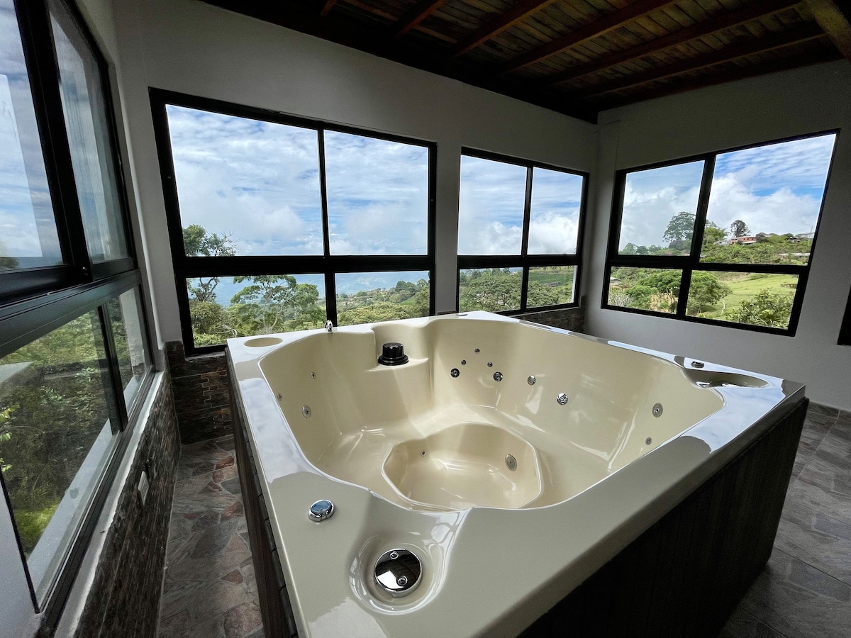 De ideale plek om te rusten en contact te maken met de natuur aan de deur van het zuidwesten van Antioquia, een ruimte vol design en koloniale architectuur die ons doet denken aan de prachtige Antioquia-traditie. Uitstekend klimaat, 360° uitzicht, jacuzzi, biljart, pingpongtafel, vogels kijken, ruime ruimtes, volledig uitgerust huis, glasvezel internet, parkeren, mogelijkheid van werknemer. We liggen op 2,5 km van de gemeente Fredonia en dicht bij Cerro Bravo en CerroTusa We wachten op je!
