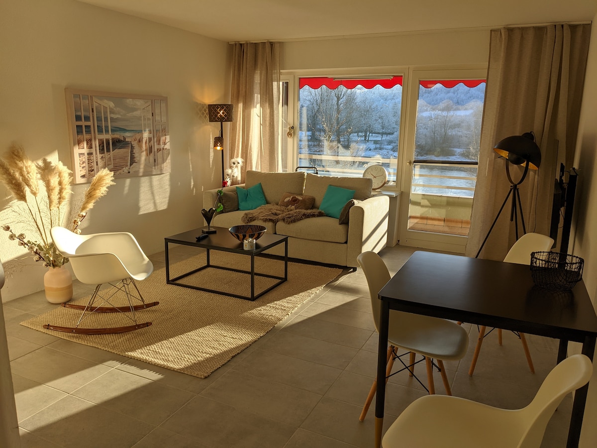 Zin om gezellige dagen direct aan de Rijn door te brengen om te ontspannen, te joggen, te fietsen of te bezoeken in de moderne thermale baden in Bad Zurzach. Is op een zeer goede locatie direct aan de Zwitserse grens, 2 minuten lopen naar de drankenmarkt, ALDI 4 minuten, Pizzeria Engel en Thais/Chinees restaurant op 2 minuten en de thermale baden in Bad Zurzach liggen op ongeveer 10 minuten afstand. Het appartement heeft een balkon bijna direct over de Rijn. Het appartement is zeer licht, vriendelijk en schoon. Winkels zijn lopend in 5 min te bereiken.