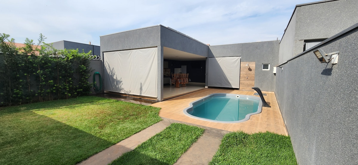 Nossa casa campo e FAMÍLIAS filho, esposa(o), onde vai para descansar e compartilhar com seus amigos, aproveitar temporada para curtir piscina, conhecer a natureza dentro do condomínio, com pista de caminhada na área da reserva, curtir canto de vários passarinhos, pesca na barranca do rio, quintal casa campo muitas flores de várias qualidade, palmeiras Azul Imperial, coqueiro triângulo fenix, todo gramado pergolado com mesa e banco, estamos aguardamos a sua reserva em nossa casa de campo
