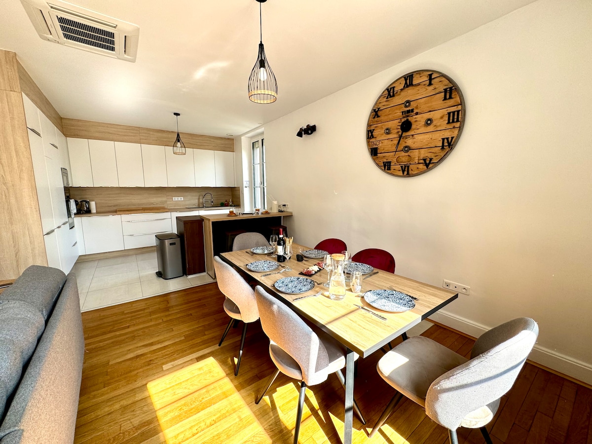 Gelegen in het hart van de stad Pont-à -Mousson en op slechts 2 minuten lopen van het treinstation, is hier onze industriële stijl Loft in atypische en warme duplex, gelegen op de 1e verdieping van een oude Limonaderie gerenoveerd tot een huis gelegen in een beveiligde residentie. Gerenoveerd met liefde zal het perfect geschikt zijn voor mensen die houden van ruimtes die design, comfort en hoogwaardige diensten combineren.