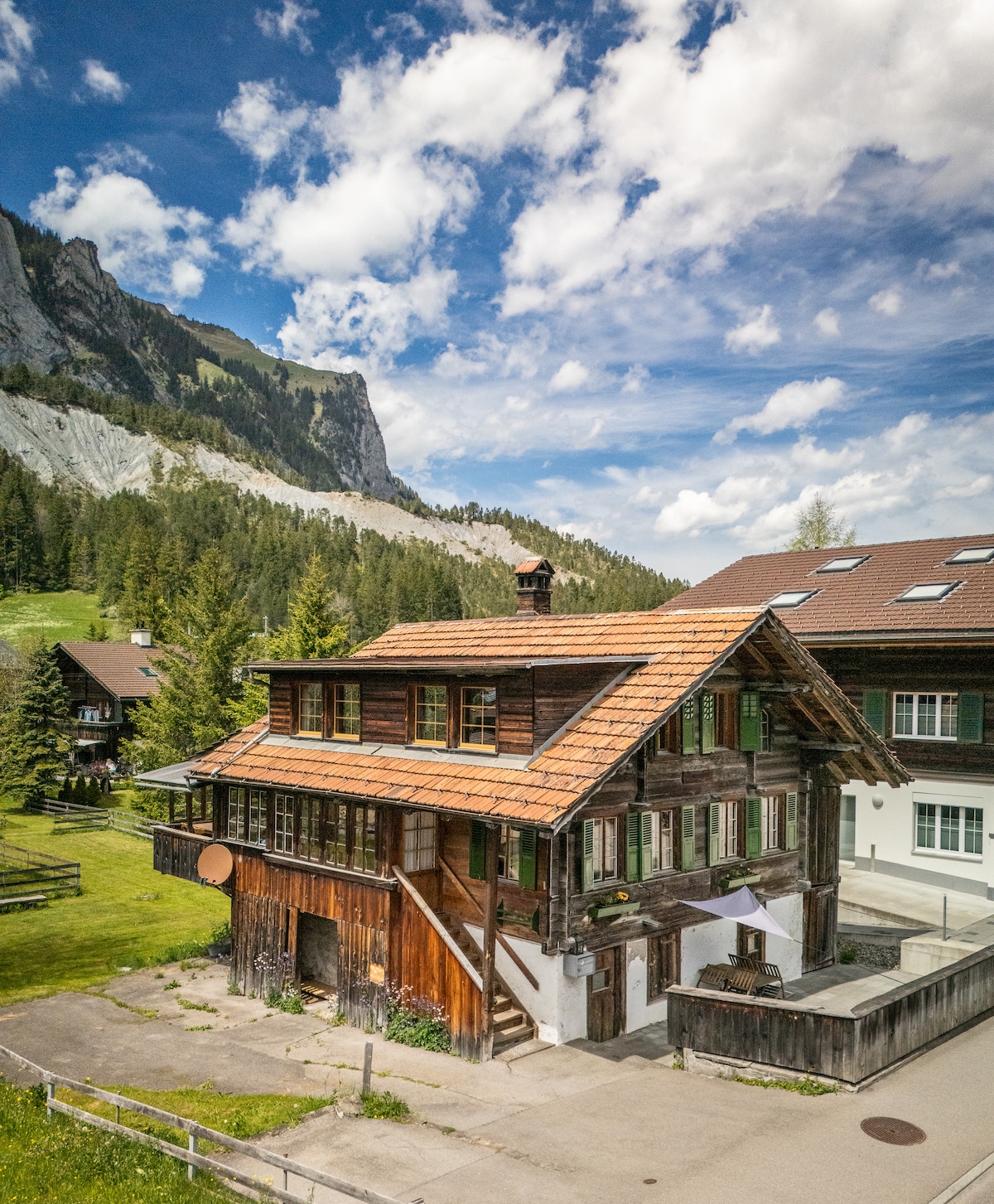 Klein chalet tot je beschikking, met terras en balkon. (Alle buitenruimtes worden gebruikt door de boer en ons.) We zitten boven Frutigen in de landbouwzone. Met prachtig uitzicht op de Frutigtal (Kandertal) en bergen. Ideaal voor recreatiezoekers, wandel- en natuurliefhebbers en liefhebbers van skisport. Frutigen ligt zeer centraal: Adelboden, Kandersteg, Valais, Niesen, Interlaken, Spiez, Thun etc. alles is snel toegankelijk. (ca. 30 minuten)