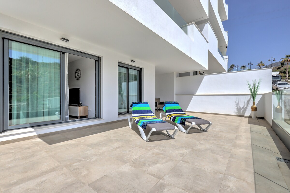 'HOME' AWAY FROM HOME How home should feel: A brand new fully renovated apartment with all amenities needed. At a 4 min walk away from the beach and 10 min walk away from the train station (Montemar Alto). Flat located on the 2nd floor with elevator facing the interior garden and the pool and peaceful surroundings. Fully equipped new kitchen, 1 terraces, AC units in all rooms and a new designer bathrooms, FREE WiFi and TV 4K with SmartTv