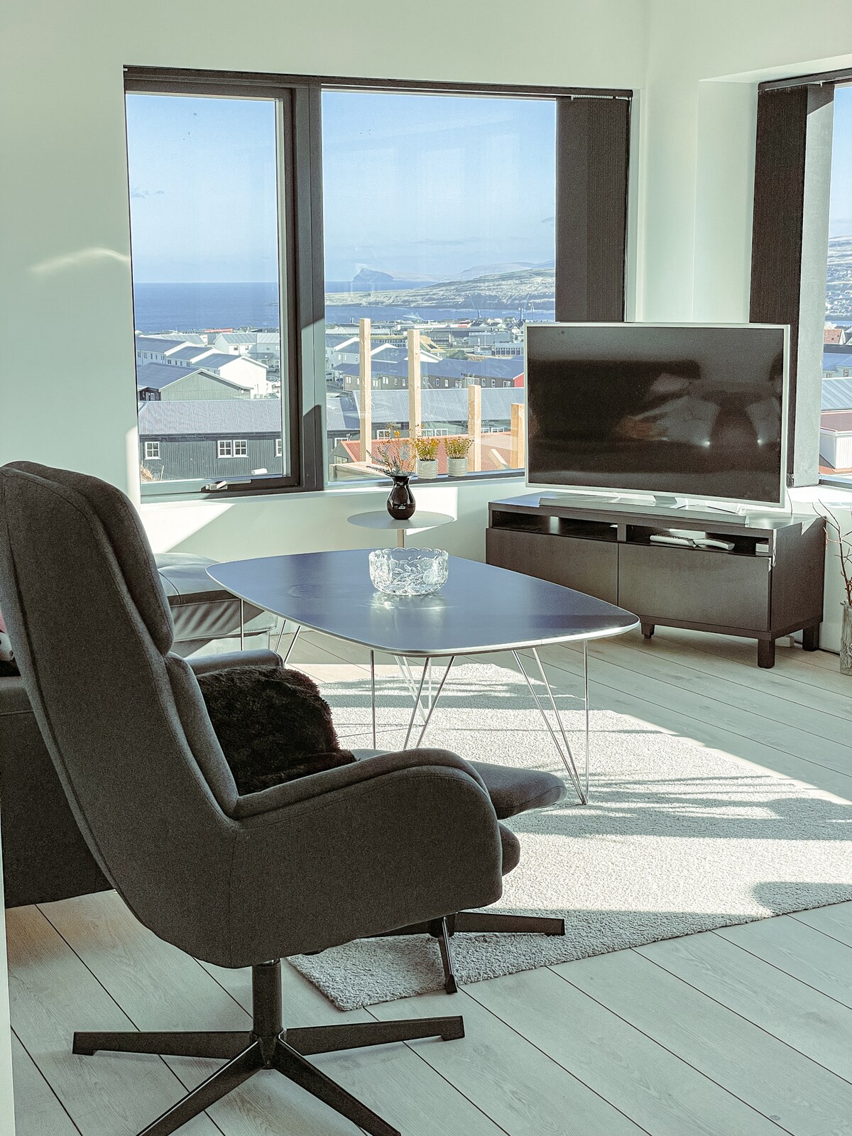 Nyd en stilfuld oplevelse i denne centralt beliggende bolig. Lejligheden er splinterny med alle faciliteter og ligger meget centralt på Færøerne, kun ca 1/2 timers kørsel til alle øerne. Der er 3 soveværelser med dobbeltsenge og et rummeligt badeværelse. Stort køkken-alrum. Alt køkkenudstyr, køle-fryseskab og opvaskemaskine. Alrum med en stor komfortabel sofa og SmartTV med adgang Netflix og Chromecast. Gratis WiFi. God pizza lige om hjørnet/gåafstand. Føl dig hjemme mens du er væk hjemmefra.