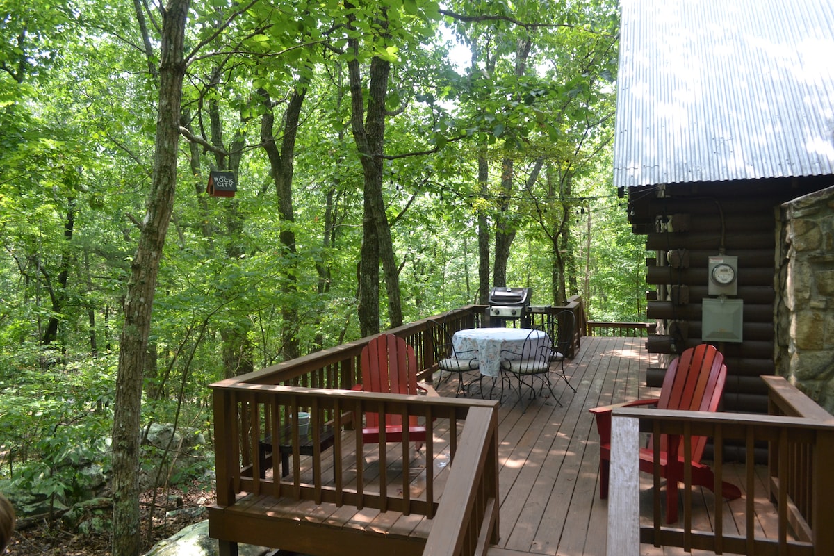 Rustic cabin in the woods nestled among giant boulders. Perfect for romantic getaways or small families. Open living area downstairs and large loft bedroom (sleeps 4), plus two decks and a screened-in porch. Pet friendly. Includes fireplace and outdoor fire pit. UPDATE - now has Air Conditioning! Conveniently nestled between DeSoto State Park & Falls, Little River Canyon and Mentone. 100% of your cleaning fee goes to our cleaners. Checkout is easy. Please note: steep indoor stairs.