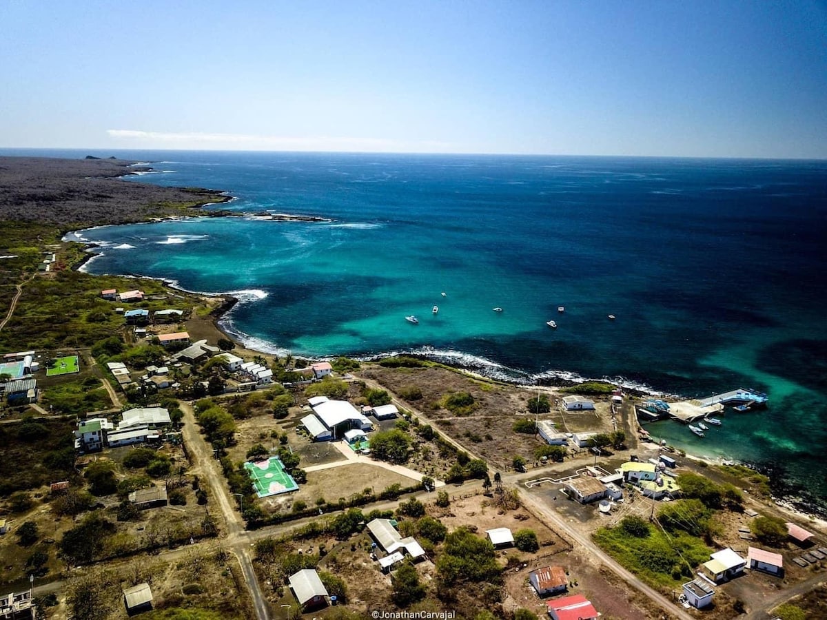 Deze unieke accommodatie, het is gelegen op de derde verdieping, heeft een prachtig uitzicht op zee, op slechts 3 minuten van de playa ¨La Estación¨en de ¨ Charles Darwin¨ Foundation, het is comfortabel en gezellig, weg van stedelijk lawaai, heeft snel internet. Het is ook gelegen aan een café met heerlijk gezond en ambachtelijk eten, waar culturele evenementen plaatsvinden in het weekend en een ideale ruimte is om te coworken.